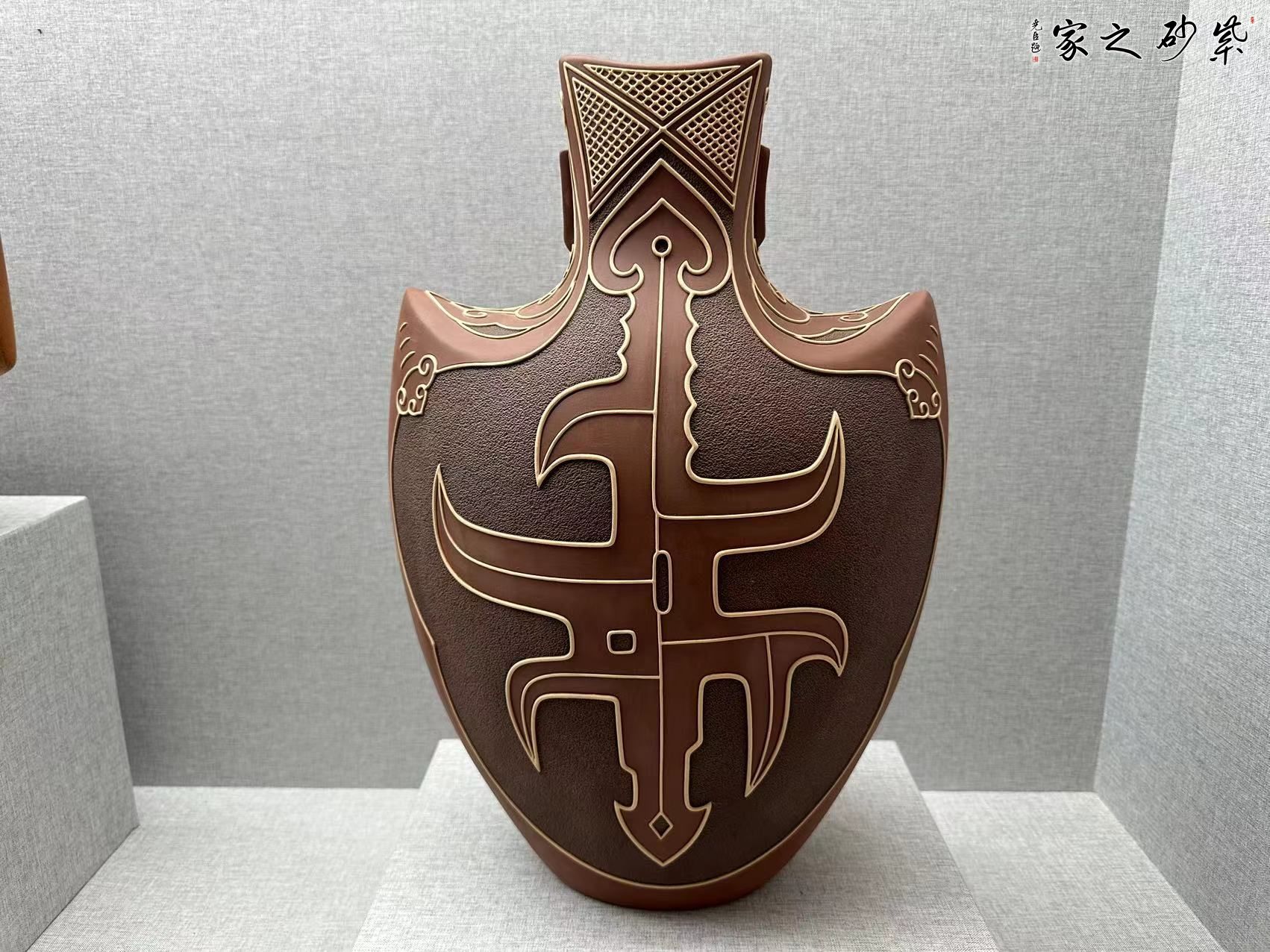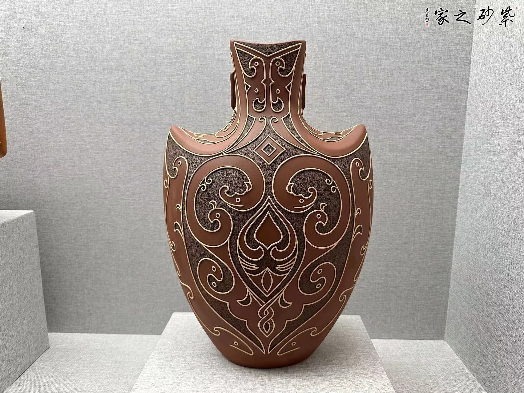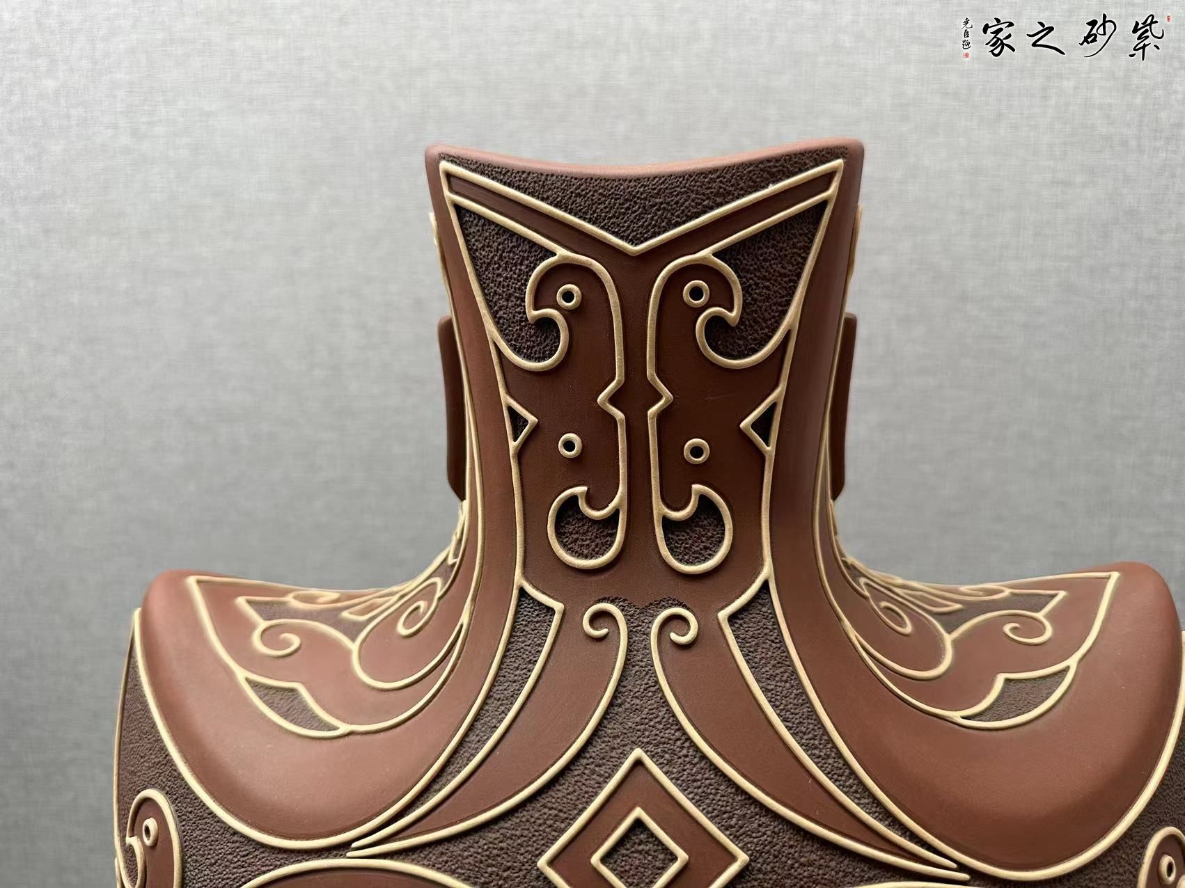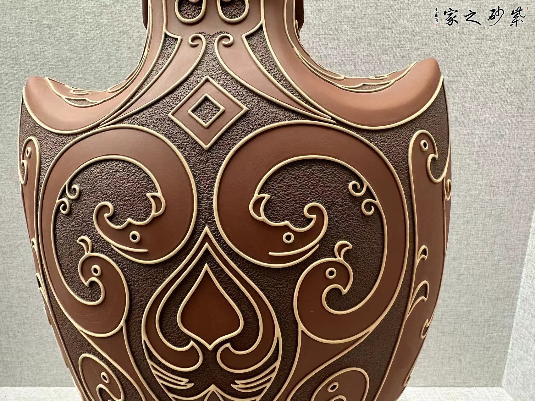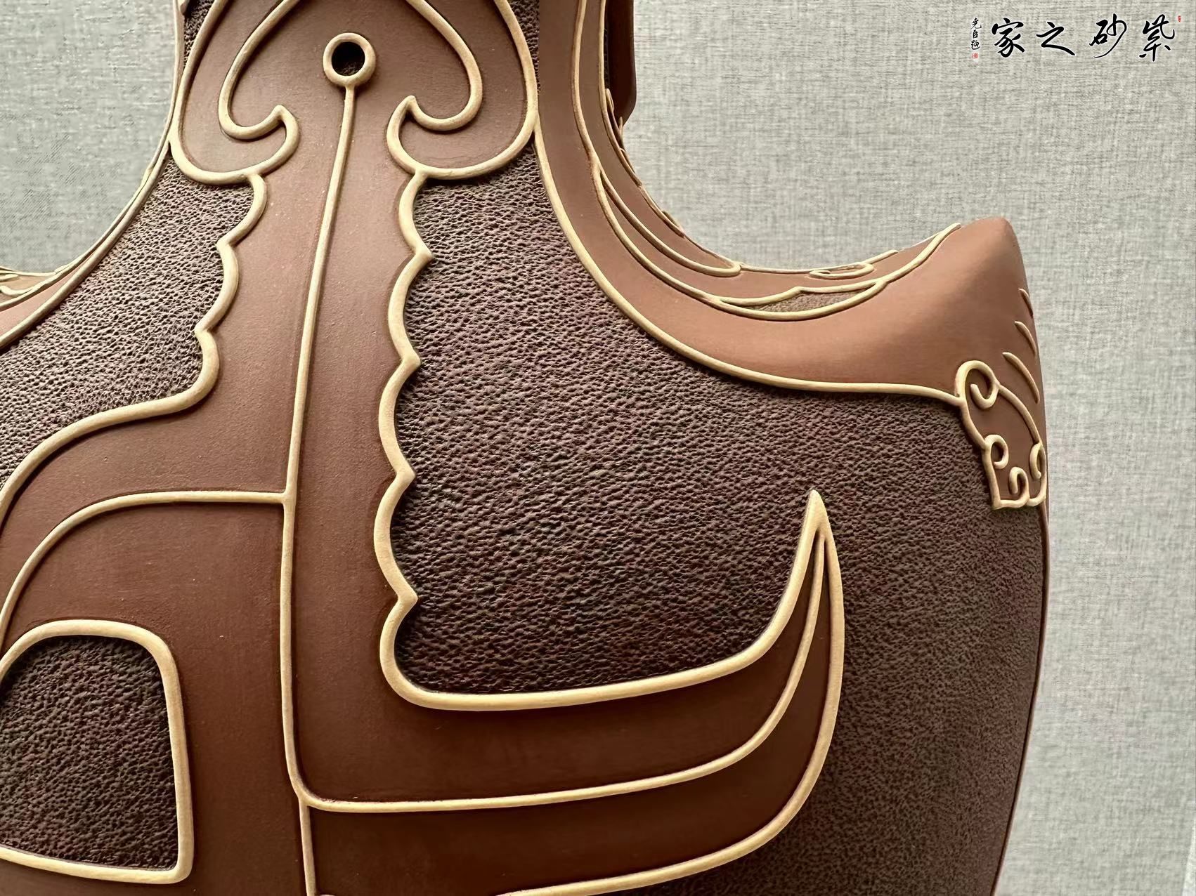 藝術(shù)就是求同存異、個(gè)性特色,在彩陶造型方面,開創(chuàng)了扁、尖、異形態(tài),在裝飾方面開創(chuàng)了挑、劃、填、噴、繪、形飾一體等十多種質(zhì)感的外觀效果,作品雅俗共賞,并在四年一屆的全國陶瓷創(chuàng)新評(píng)比中十多件次獲獎(jiǎng),其中 “紫玉瓶”、 等作品三屆獲金獎(jiǎng),作品先后被“國博”“國務(wù)院”、“首博”等博物館收藏,在彩陶之余,研修紫砂壺藝,以獨(dú)特的視角創(chuàng)作作品,豐富了紫砂壺的文化藝術(shù)。