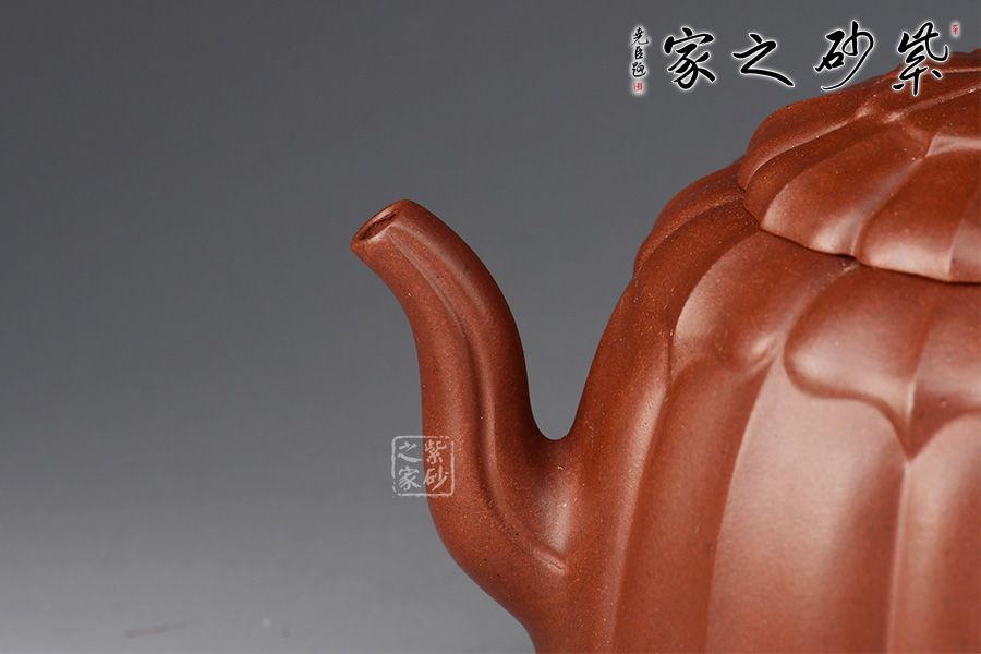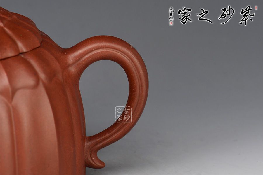 該壺是筋紋器的器型之一,壺身由多瓣筋囊組成,壺身筋囊飽滿,紋路清晰,線條明快,手法干凈利落,處理頗為老練;自壺鈕至壺底皆以筋紋一以貫之,口蓋吻合嚴密,二彎流與耳形把前后相應(yīng)。以壺把的纖細襯托出壺身的豐滿,更具風度。