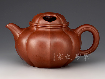 其制作作風嚴謹,工藝精致入微,功底深厚,對紫砂工藝有較高的造詣,作品線條流暢、富有神韻、個性明顯,尤擅長錦囊器的制作,作品線條挺擴,硬朗,對稱,壺內(nèi)泥片理得非常干凈。