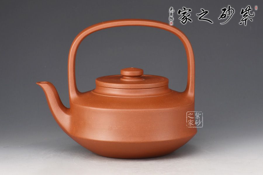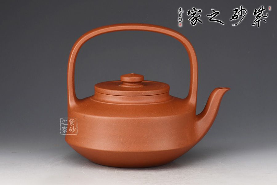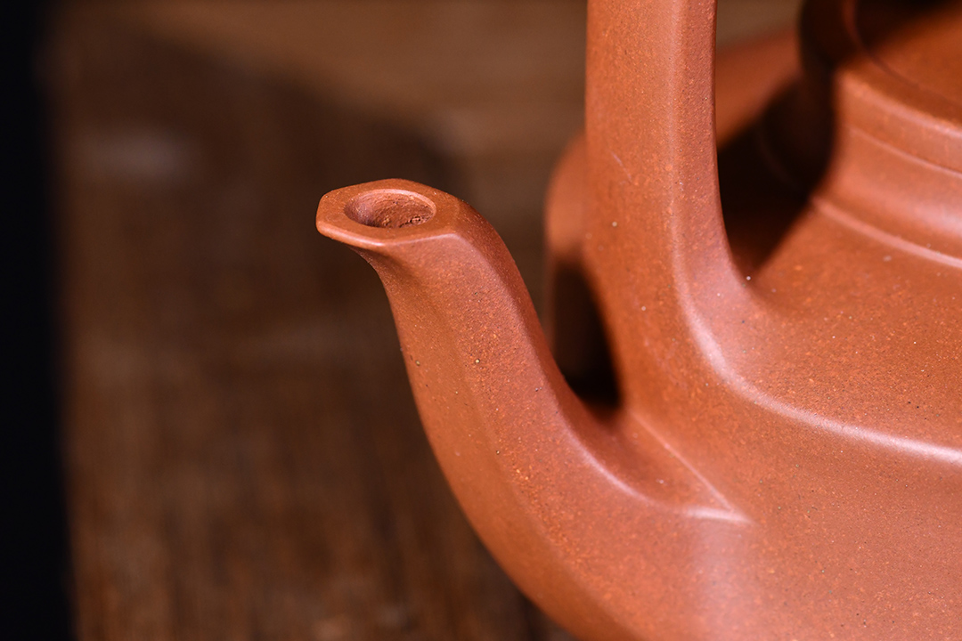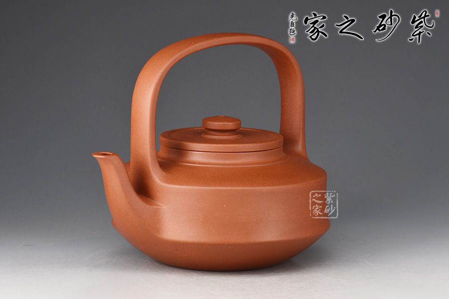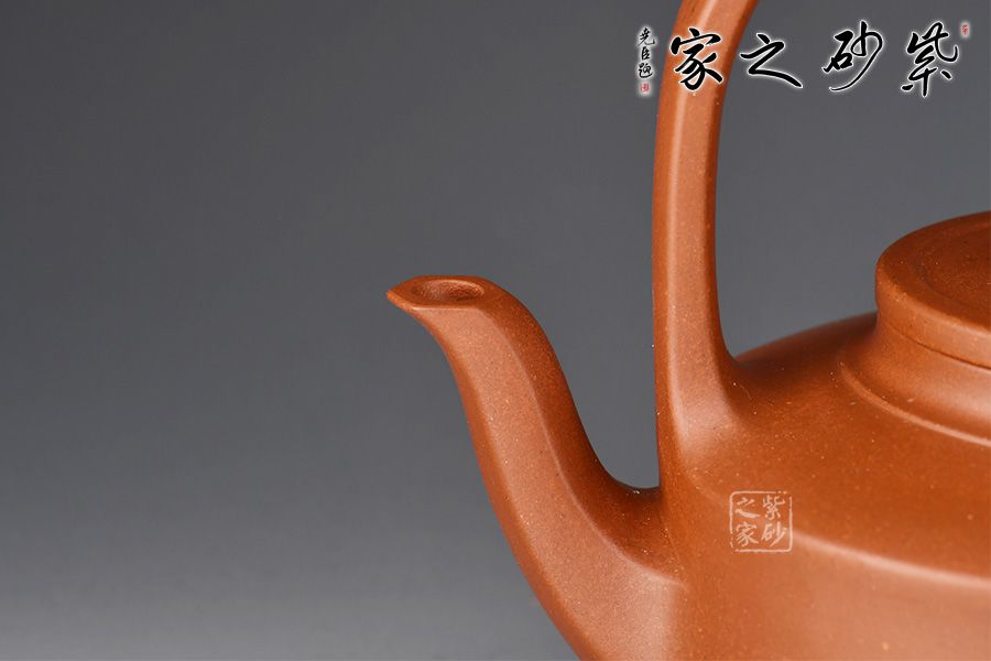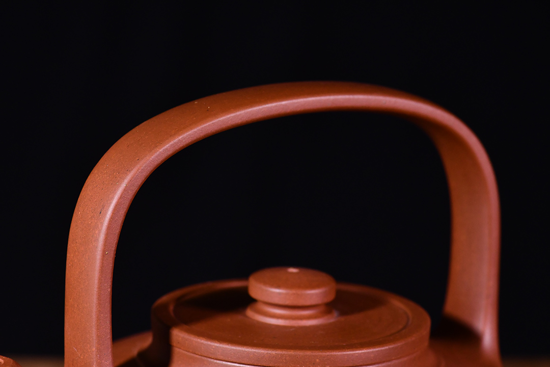 此提壁壺選用原礦底槽清精制而成,泥色溫潤(rùn)古雅,為紫砂壺的經(jīng)典造型之一。壺體呈扁圓筒狀,壺頸束云肩線,平蓋扁鈕,與壺體上下呼應(yīng)。壺流自壺腹胥出,以棱線飾之,延伸至壺面,寬柄提梁凌空拔起,與壺體產(chǎn)生虛實(shí)對(duì)比,氣勢(shì)十足,襯托出全壺之大將風(fēng)范。整器剛?cè)岵?jì),和諧勻稱,是一把欣賞、把玩、實(shí)用的佳作。