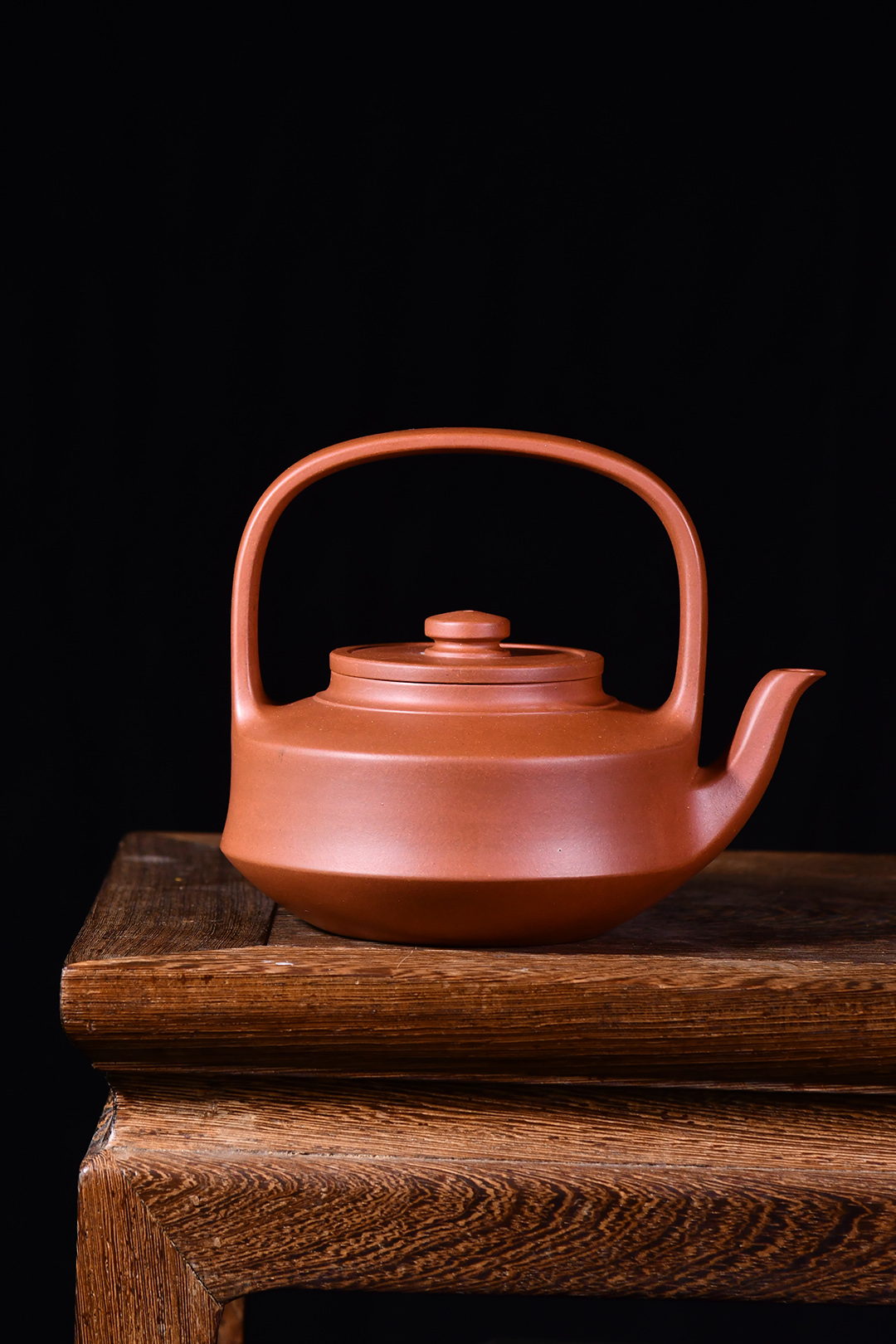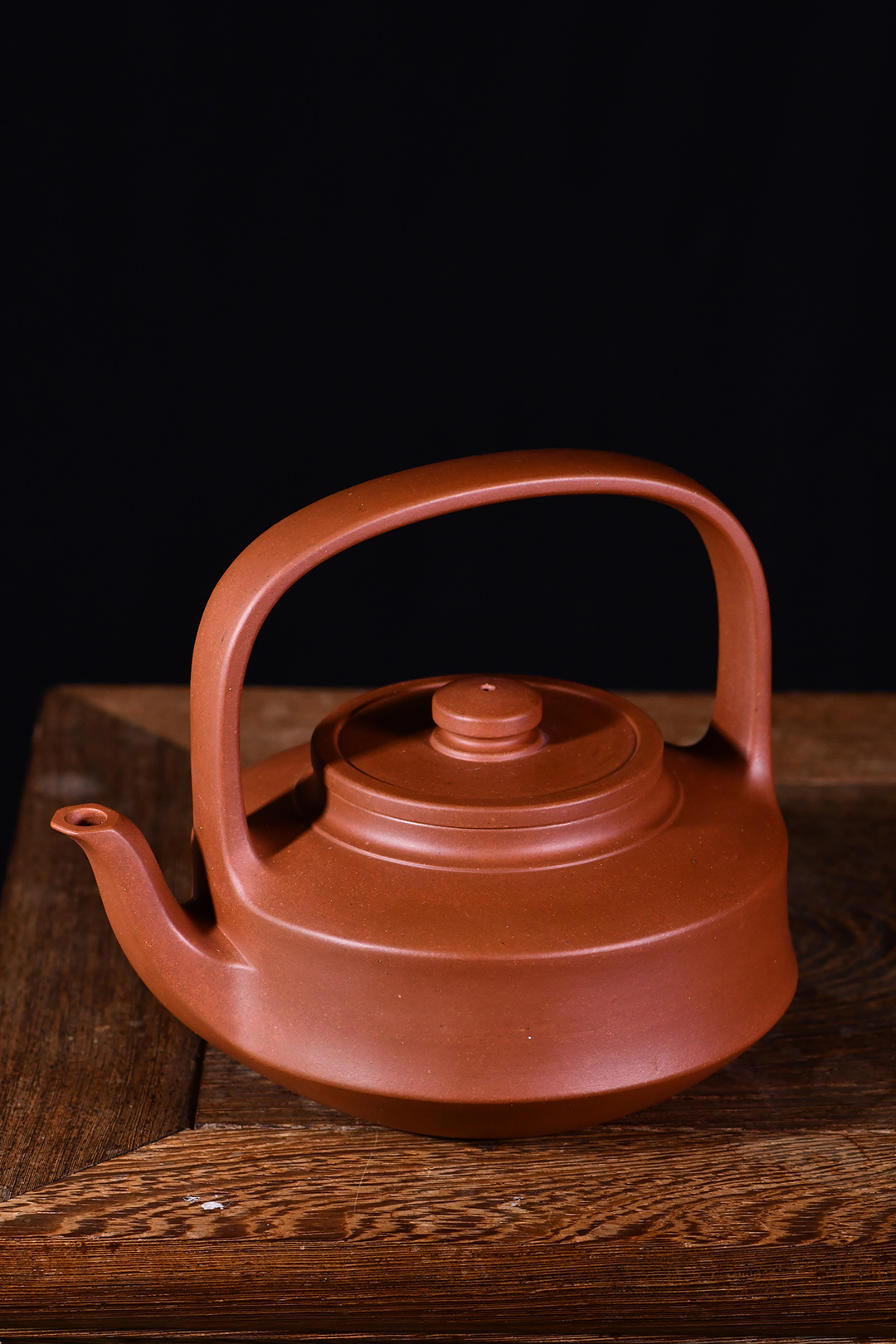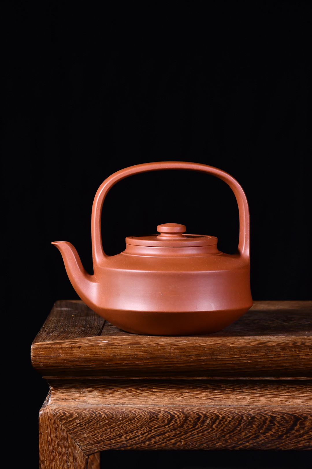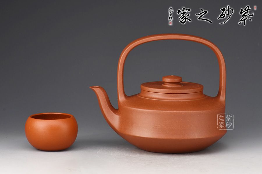 此提壁壺選用原礦底槽清精制而成,泥色溫潤(rùn)古雅,為紫砂壺的經(jīng)典造型之一。壺體呈扁圓筒狀,壺頸束云肩線,平蓋扁鈕,與壺體上下呼應(yīng)。壺流自壺腹胥出,以棱線飾之,延伸至壺面,寬柄提梁凌空拔起,與壺體產(chǎn)生虛實(shí)對(duì)比,氣勢(shì)十足,襯托出全壺之大將風(fēng)范。整器剛?cè)岵?jì),和諧勻稱,是一把欣賞、把玩、實(shí)用的佳作。