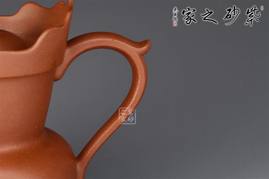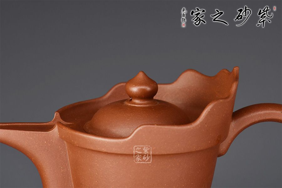 僧帽壺壺體采用六方造型,壺身上下收斂,壺腹圓鼓卻可見弧度,壺口由六片相同形狀帽沿圍繞而成,如同一保護(hù)墻,壺蓋同樣以六方形出現(xiàn)與壺口相對應(yīng),兩者結(jié)合緊密,如同一體,壺把方中見圓,柄貼便于抓握。