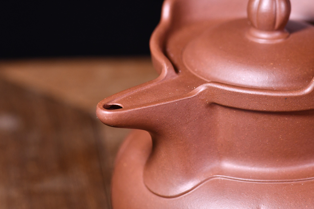 壺嘴如同一鴨嘴出水孔居于上,增加趣味性。整壺線面挺括平正,輪廓線條分明,美感十足,給人干凈利落,明快挺秀之感。