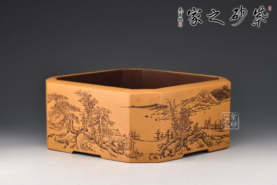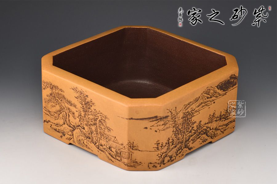 該水洗單看外形已極具美感,方中見圓,四方抽角肌健凸顯,充滿張力。制作工藝繁復(fù)精湛,使泥,形,技,神,氣,態(tài)達(dá)到內(nèi)涵與神韻的高度和諧,為存世紫砂水洗之罕見,誠為一件難得的藝術(shù)珍品。