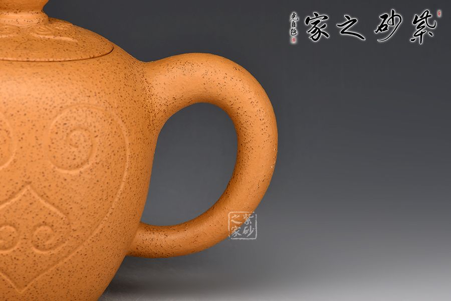 泥性: 感甜嫩綿密,質(zhì)堅而溫潤,呈近田黃色調(diào),為江蘇宜興趙莊山系朱泥礦~黃石黃之共生礦,經(jīng)挑揀練製而成,因含鐵量只達(dá)6%左右,致陶之后呈“金田黃色”。窯溫約1175~1180度。收縮比12%。