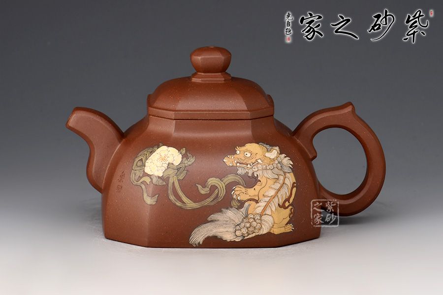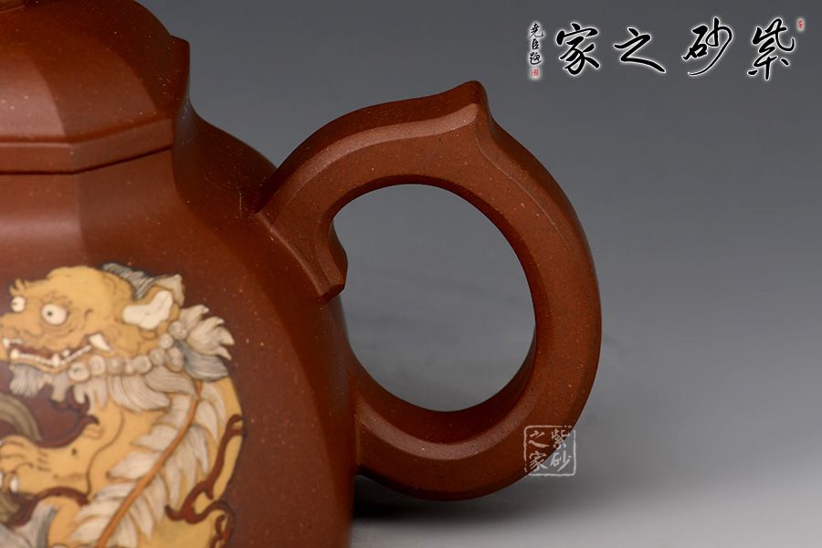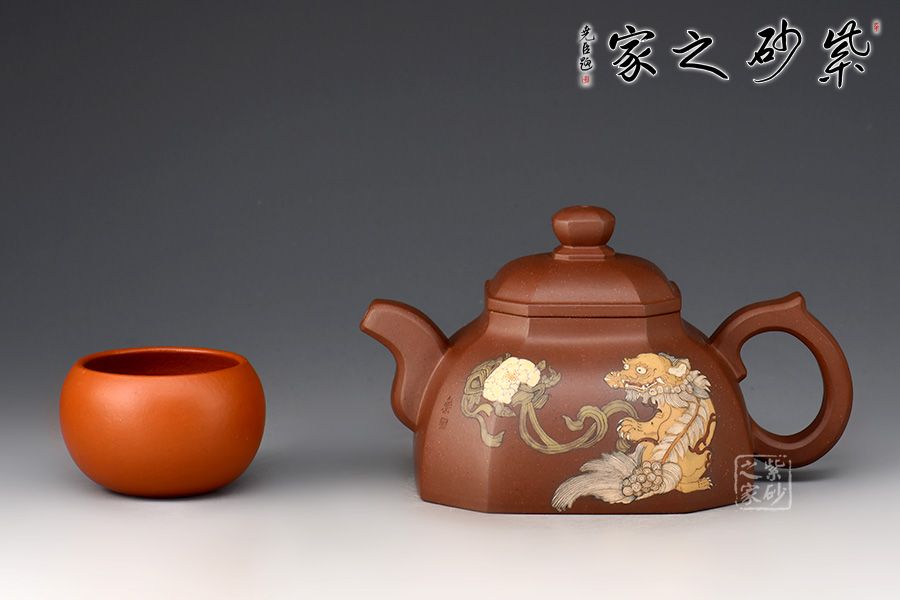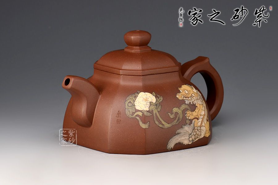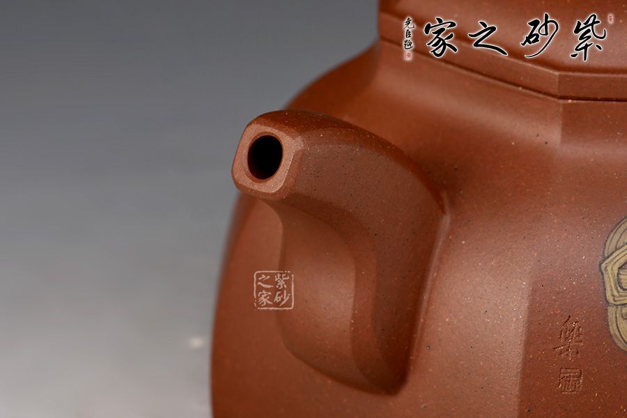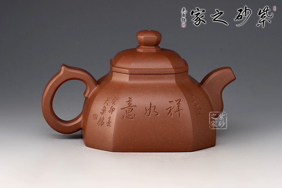 光貨離不開裝飾。俗話說“壺隨字貴,字隨壺傳”:光壺不刻字,就是一把光壺;壺上面刻了大師、名人的字,一把壺的含金量就高了,收藏價值就更高,升值潛力就更大。王福君與中國工藝美術(shù)大師譚泉海合作最多,其次是徐安碧、鮑志強、毛國強(均為中國工藝美術(shù)大師、中國陶瓷藝術(shù)大師)。