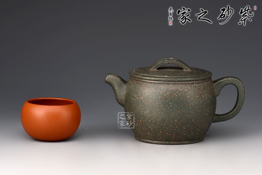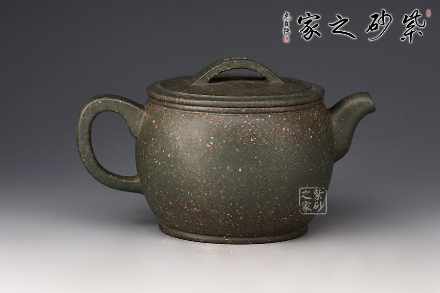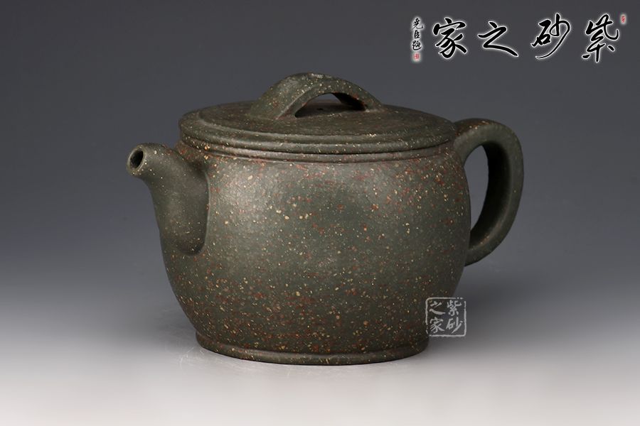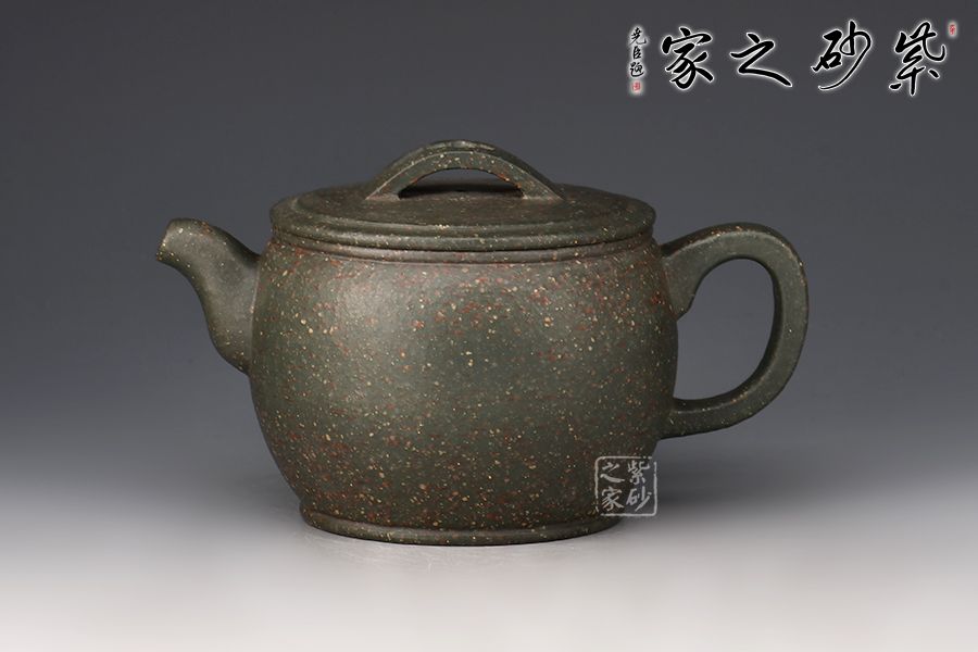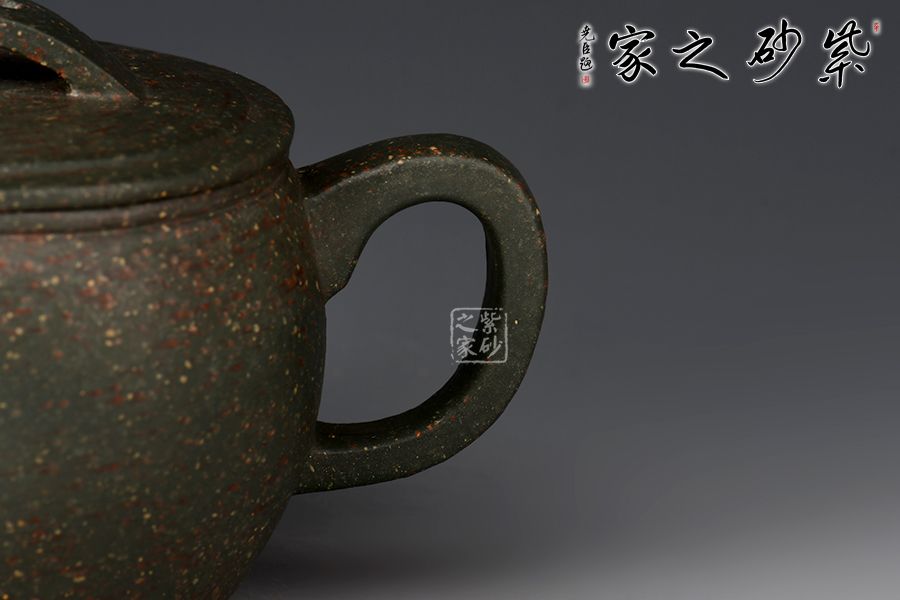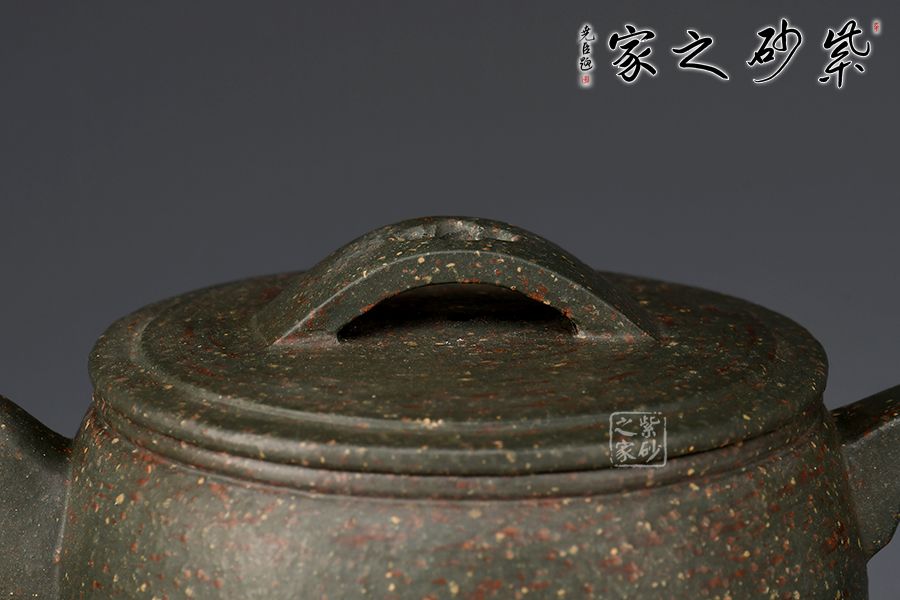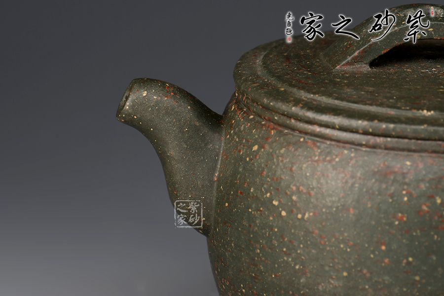 漢瓦屬于圓器中的經(jīng)典傳統(tǒng)器型,歷來多位藝人都有仿制此種款型,而此款漢瓦壺卻給人留下深刻印象,此壺圓筒形壺體,上寬下窄,短彎流自壺身胥出;蓋平,橋式鈕,鈕面陰刻梅花紋樣;雪華綠泥與顧景舟的雪華壺屬同一配方配制而成;壺蓋子口制作圓滑,與壺口緊密結(jié)合,氣密性好,此壺工藝講究,雋永耐看!