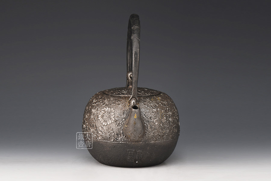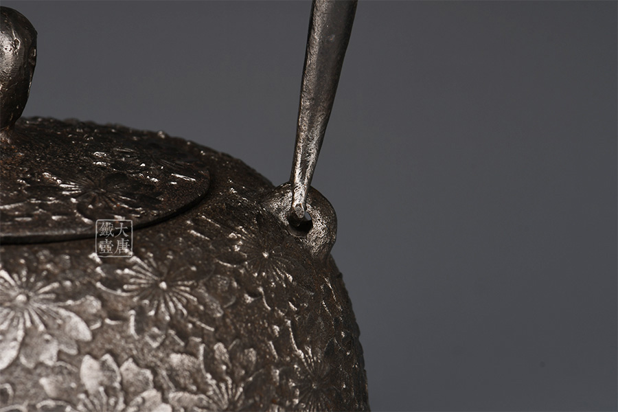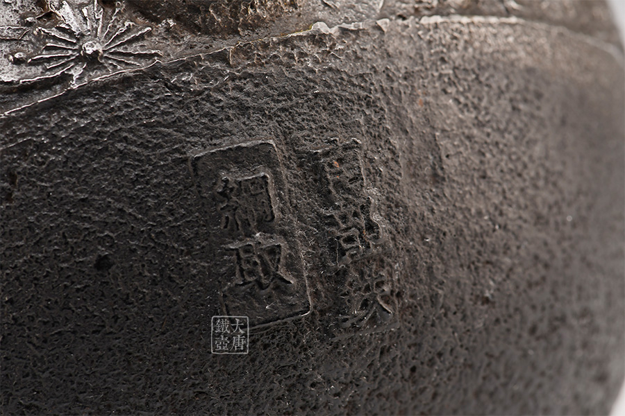 虎山工房創(chuàng)立于1955年,位于盛岡市手作村,是日本南部鐵器中的重要代表?!被⑸健敝从诔醮獛熜芄绕郊某錾厥且郧澳喜糠曫B(yǎng)老虎的地方,故取“虎山”作為工房的名字。熊谷平吉擅長(zhǎng)印刻湯釜和鐵瓶上的圖案,制作的鐵器帶有濃厚的藝術(shù)氣息,被視為鐵和火融合于一身的茶道藝術(shù)品?;⑸焦し恐谱鞯蔫F瓶,主要以砂模澆鑄的方法為主,但是改進(jìn)了木質(zhì)刮板的制模技術(shù),從而得以制作出多邊形的鐵器,在南部鐵器中獨(dú)樹(shù)一幟。