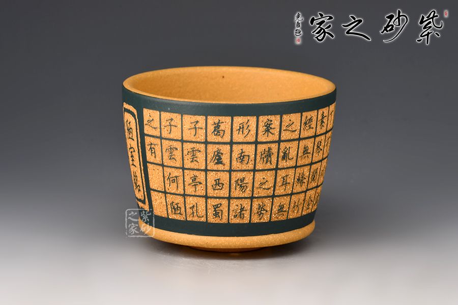 此杯為高級工藝美術(shù)師穆明龍親制,160cc大小正好,老師為紫砂一廠特級練泥師,泥料更是上乘!壺身刻繪《陋室銘》,筆力蒼勁,難得佳品!
