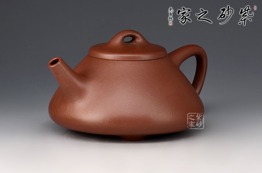 吳建平,人稱吳石瓢,石瓢之大家。高級工藝美術(shù)師,師承研究員級高工蔣彥,擅長全手工制石瓢、仿古、掇球。此款子冶石瓢采用原礦底槽青泥料制作,色澤溫厚淳樸,端莊大氣。壺身呈呈三角形,周身皆以圓弧線條構(gòu)成,嘴、把、的處處銜接自然流暢,線條利落明確,起承轉(zhuǎn)合交待清楚。下以三圓足支起全身,使壺顯得挺括有神,沉靜而深意雋永。越是簡潔的壺越考驗功力,吳建平老師的石瓢作品升值潛力極大,喜歡的藏友不要錯過!