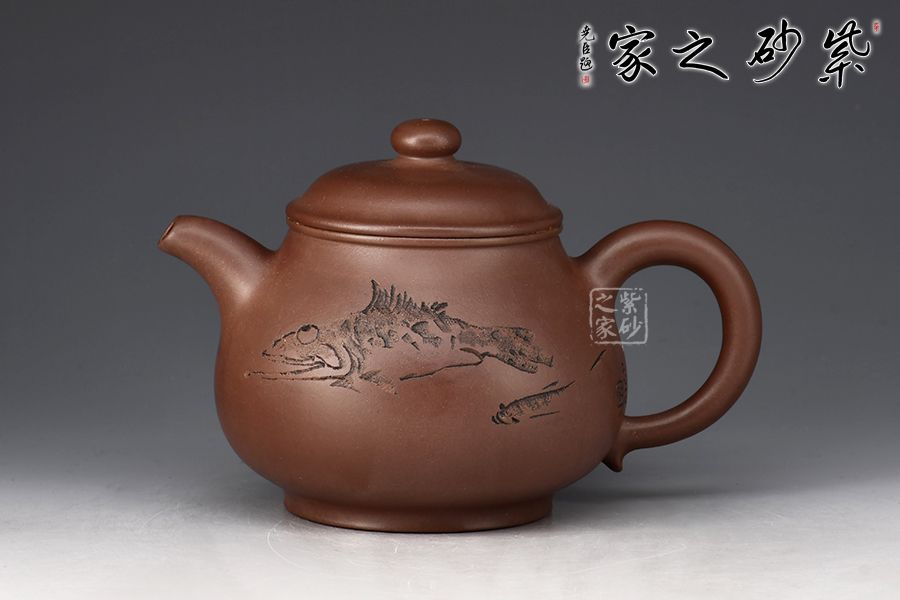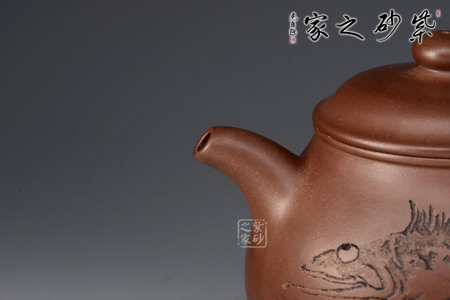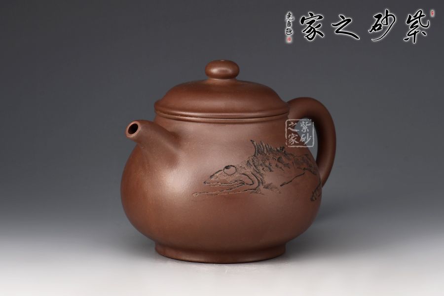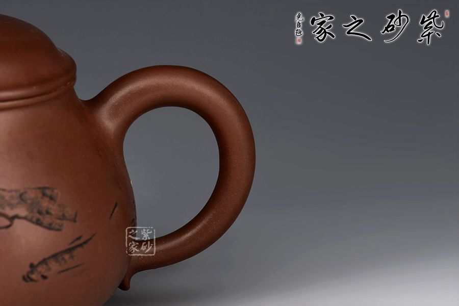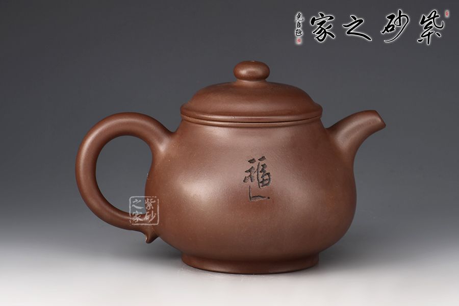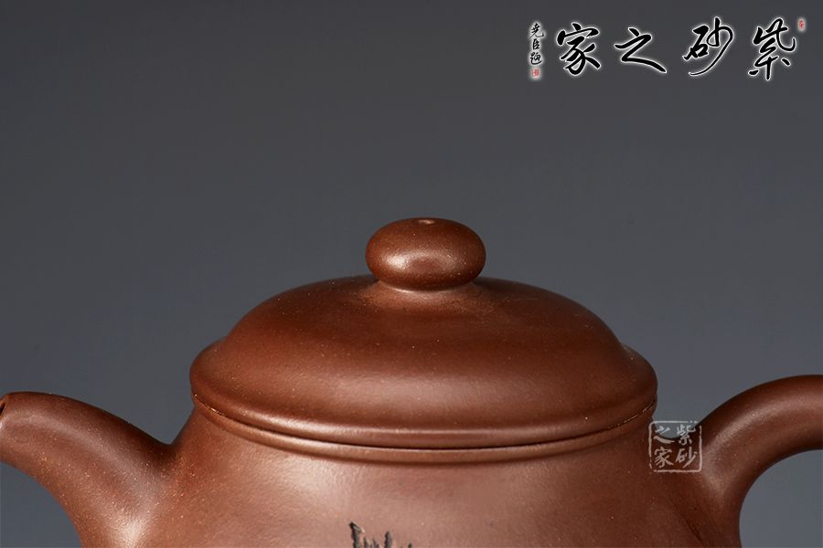 此件全手潘壺,摹古經(jīng)典而具創(chuàng)新之意,壺身略高呈高梨形,上斂下豐,壺腹圓潤,寬厚能容,而氣質(zhì)沉穩(wěn),加之以老紫泥制成,泥色古樸,好泡養(yǎng)。