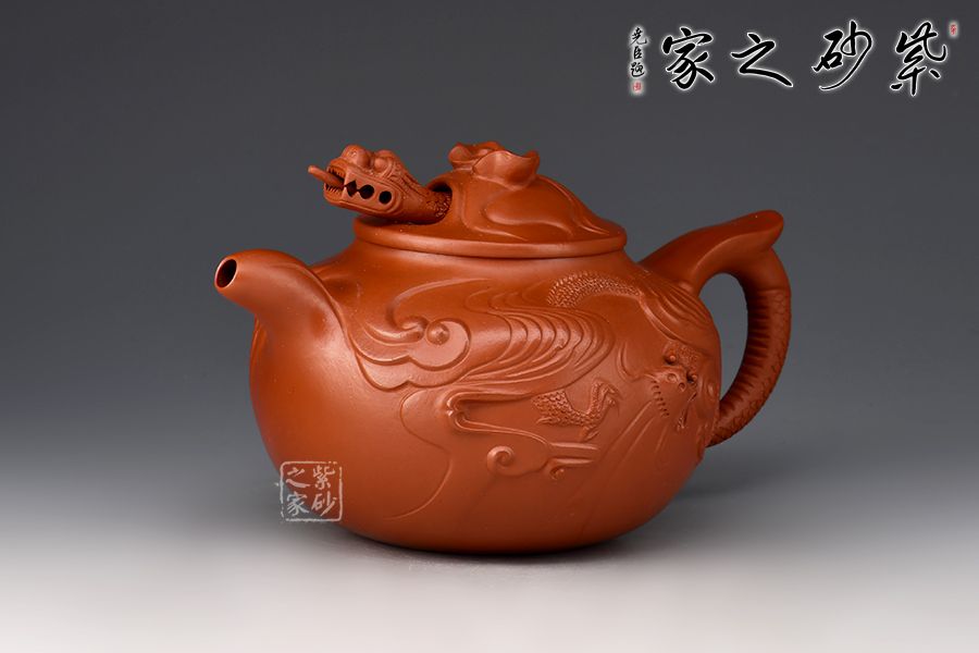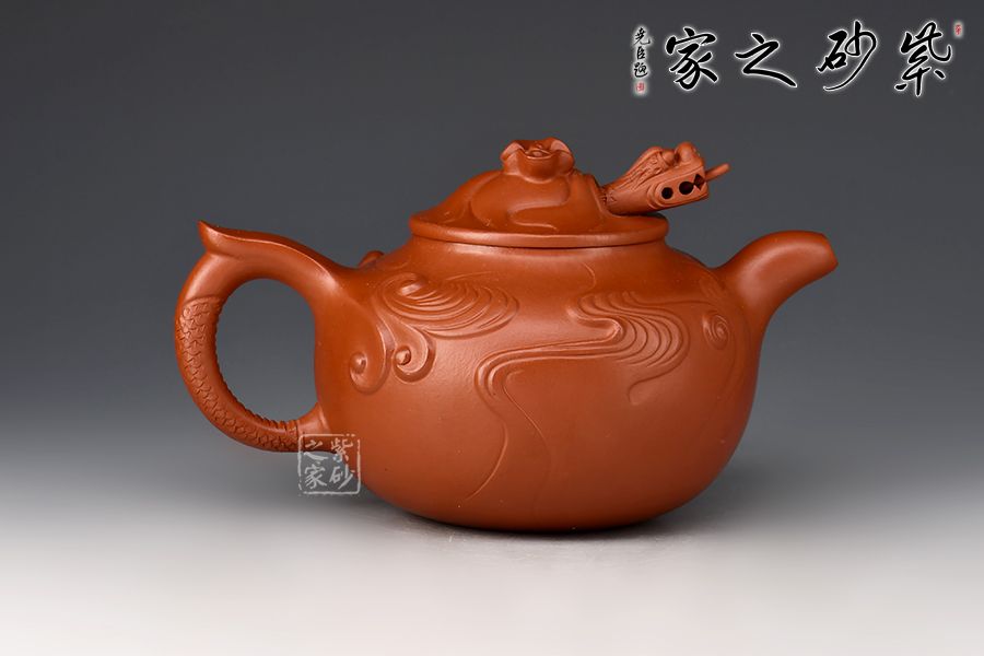 此款壺是經(jīng)典器型魚化龍壺紋飾的創(chuàng)新。魚化龍壺為邵大亨創(chuàng)制,其壺蓋上的“活動龍頭”的制作絕技,也被傳為是他最早設(shè)計應(yīng)用。