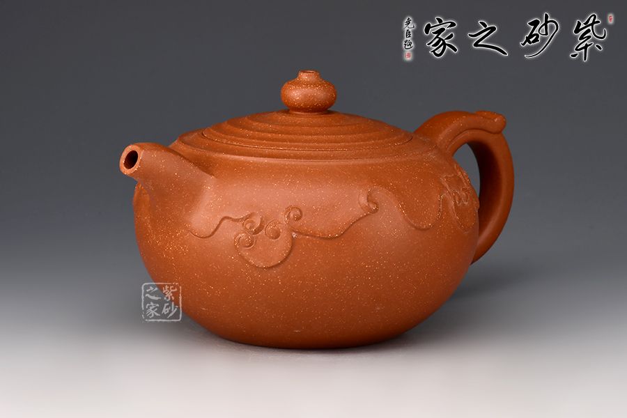 此壺壺身飽滿圓潤(rùn),一彎流,耳把相呼應(yīng),壺鈕立于嵌蓋之上,自上而下俯視,仿佛一滴水落下泛起陣陣漣漪,此壺型美意境美,賈志老師工藝了得,乃佳品一件,值得入手!