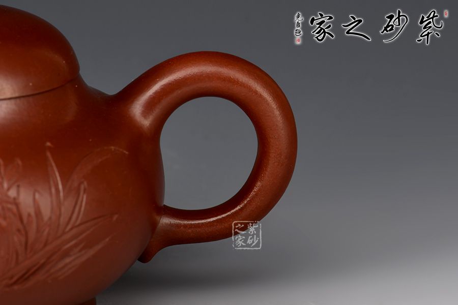 此壺溫文爾雅,端秀大方;從形體的構(gòu)思到工藝的加工都非常精到,體現(xiàn)出簡(jiǎn)潔大方,富貴高雅之美,達(dá)到了紫砂圓器的最高要求;壺身飽滿,一彎流出水爽快,圈把抓握舒適。截蓋與壺身似一氣呵成,加底設(shè)計(jì)古雅顯大氣,飽滿中藏靈秀,穩(wěn)重憨實(shí),落落大方。