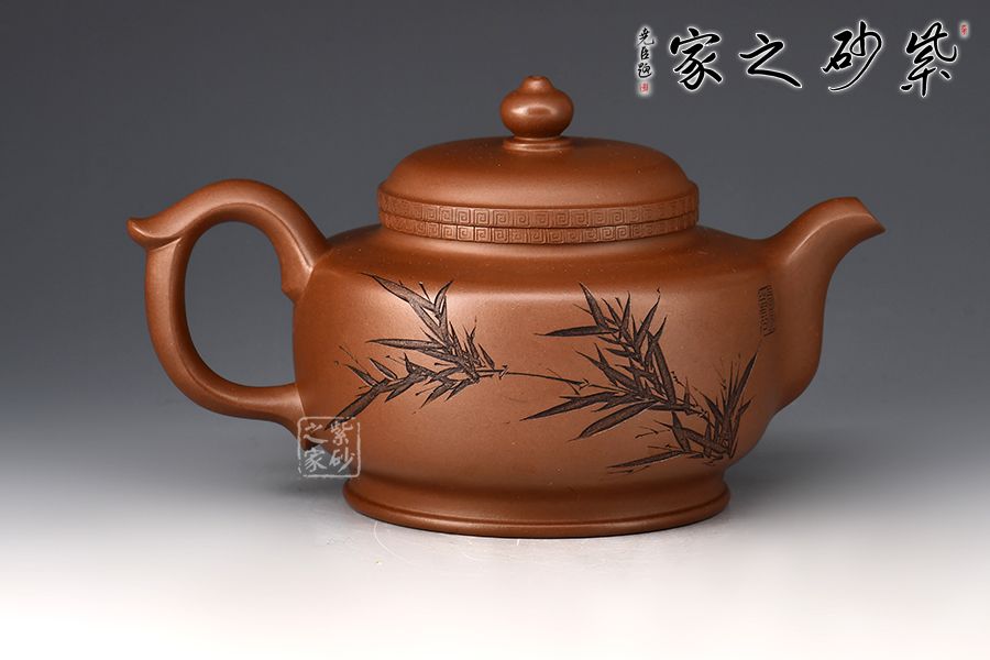 君玉壺壺身呈圓柱形,線條流暢舒展,平肩過渡有序,短頸精致,壺口大與平蓋吻合嚴(yán)密,做工嚴(yán)謹(jǐn)。柱鈕與壺身一致,互相呼應(yīng),融合一體。壺嘴小巧,彎曲有度,出水爽利;壺把為飛把,方便拿捏。一圈圈足,整壺給人溫潤如玉、君子如蘭之感,是久愈泡養(yǎng)品鑒的佳品。范偉群大師刻繪裝飾,推薦收藏!