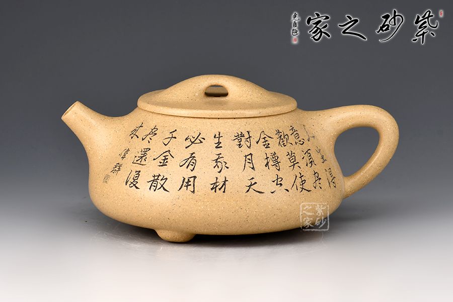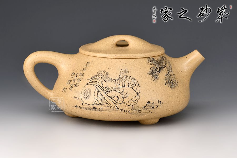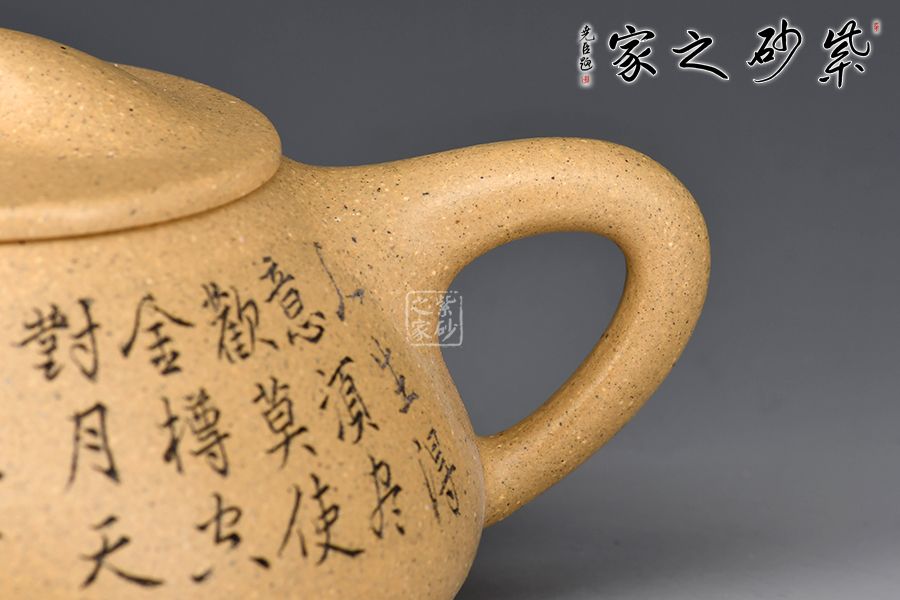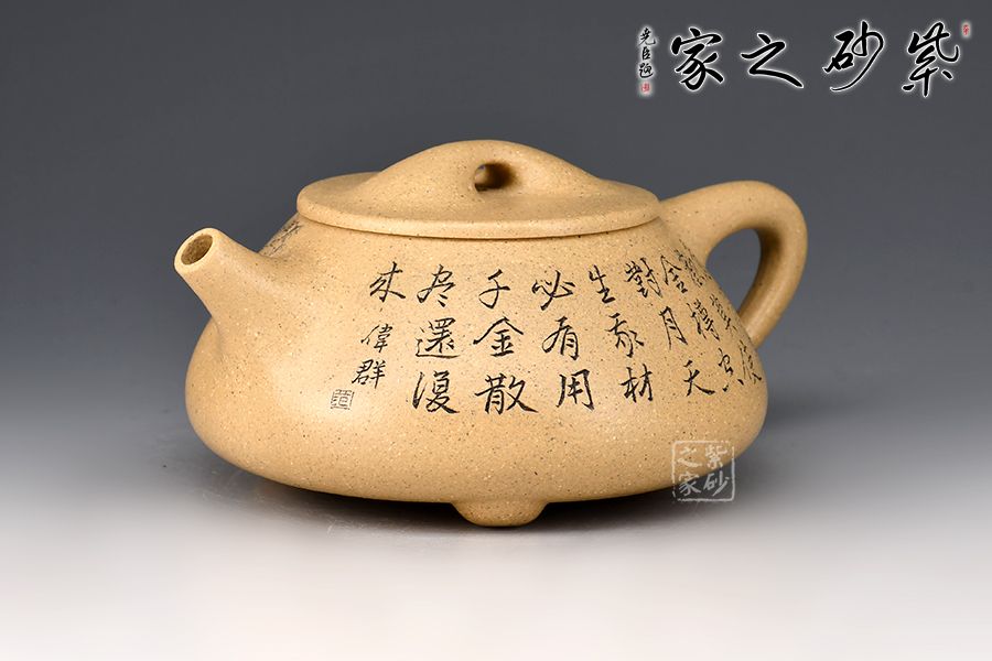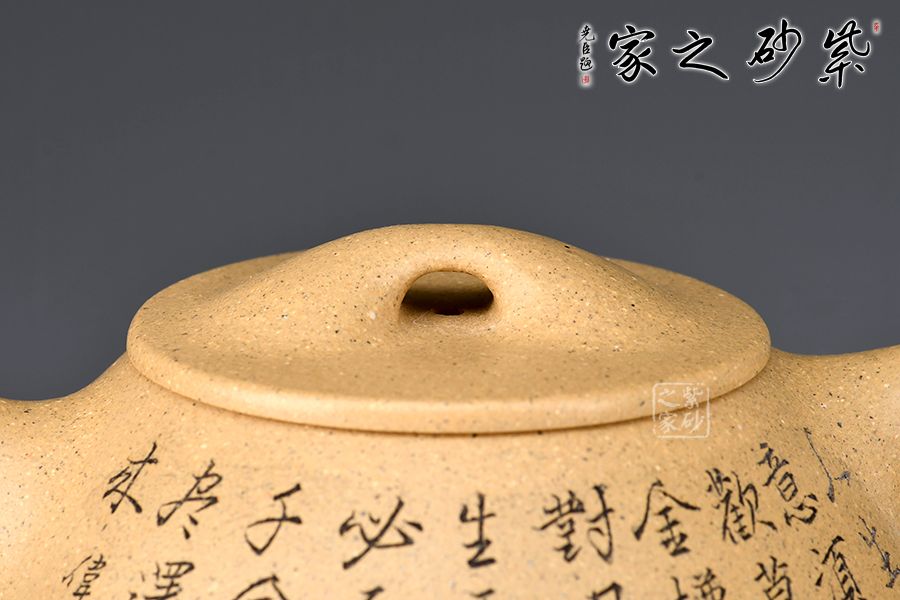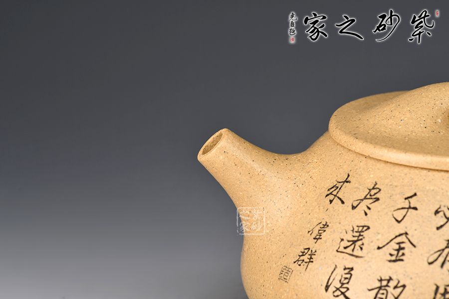 整壺呈金字塔形,豐潤飽滿;流與身筒夾角、耳把呈三角形;壺流的特色在于短小而有力,為直筒形,出水爽利;壺鈕采用拱橋造型,使整款壺在簡單中多了一份活力;壺蓋與壺身嚴絲密縫,具有極高的實用性。 范偉群大師刻繪裝飾,收藏重器一把。