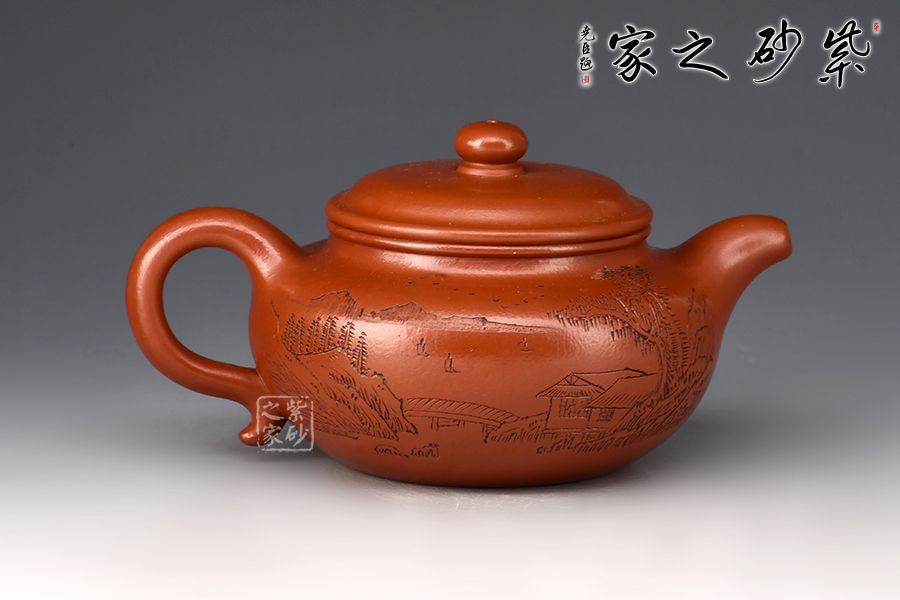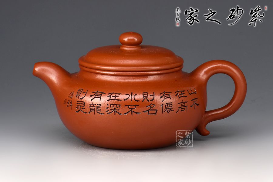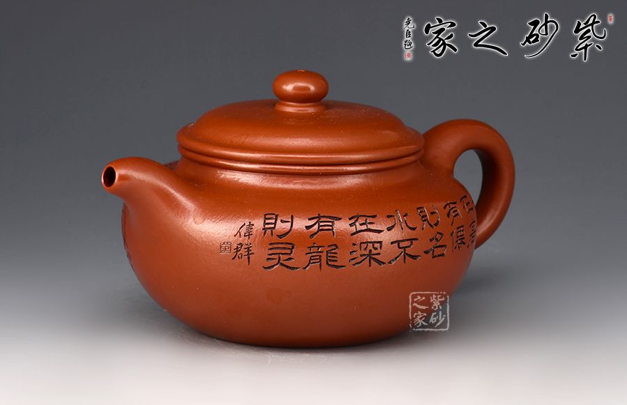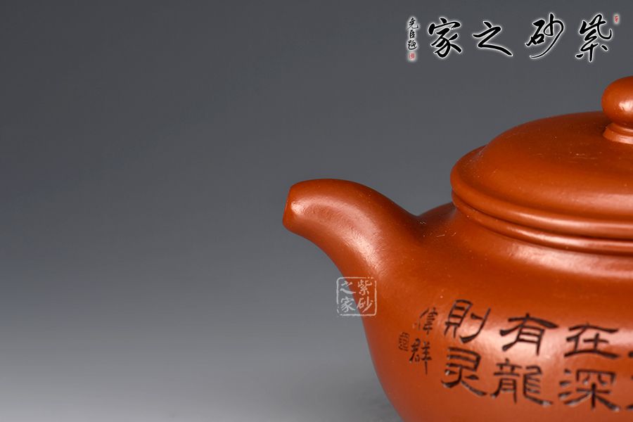 此壺為作者摹古經(jīng)典,全手工精制而成。鼓形壺身氣韻飽滿,鈕、流、把曲線流暢,走勢和諧,線條收放自如,一氣呵成。整器形體美觀,出水爽利,手感上佳,雅韻充沛,范偉群大師陶刻,是一把高性價比、精工實用的殺茶利器,推薦入手。