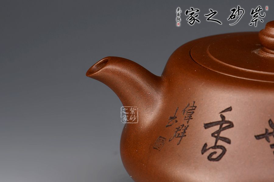明鏡壺精選紫泥為胎,老師全手工制作而成,泥色古樸,好泡養(yǎng)。壺腹飽滿,線條流暢。二彎流出水爽利,飛把拿捏舒適。嵌蓋設(shè)計(jì)嚴(yán)絲合縫,壺鈕形似縮小版的壺身,小巧可愛。壺體加底設(shè)計(jì),穩(wěn)重中見大氣,展現(xiàn)藝師的胸襟和氣度。范偉群大師刻繪裝飾,推薦收藏!