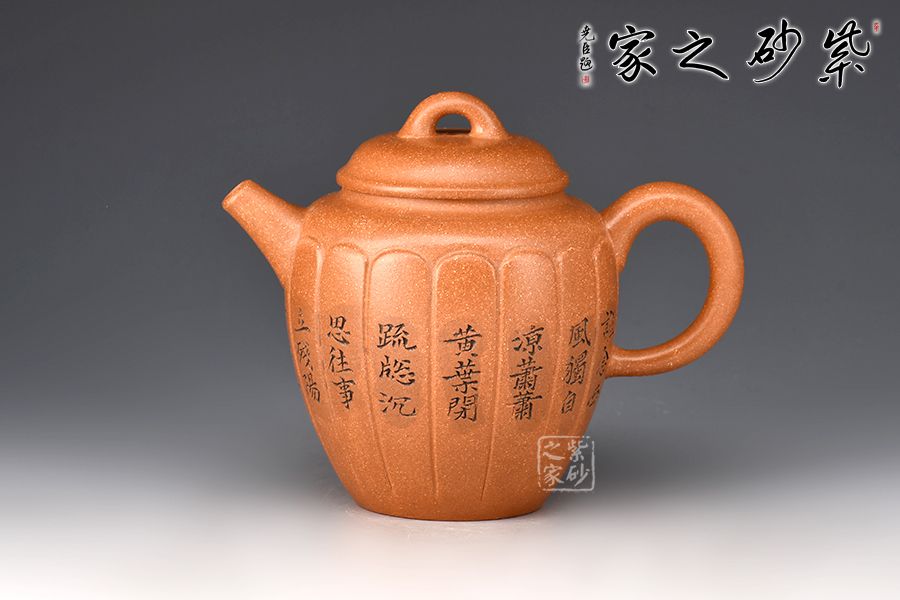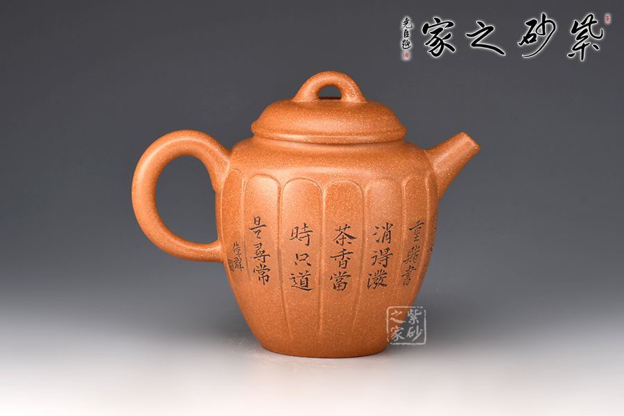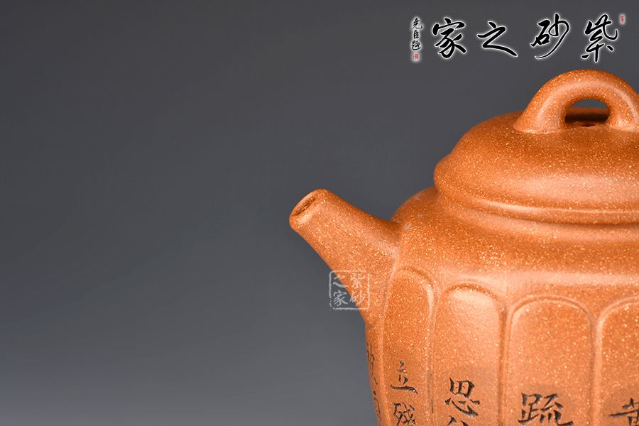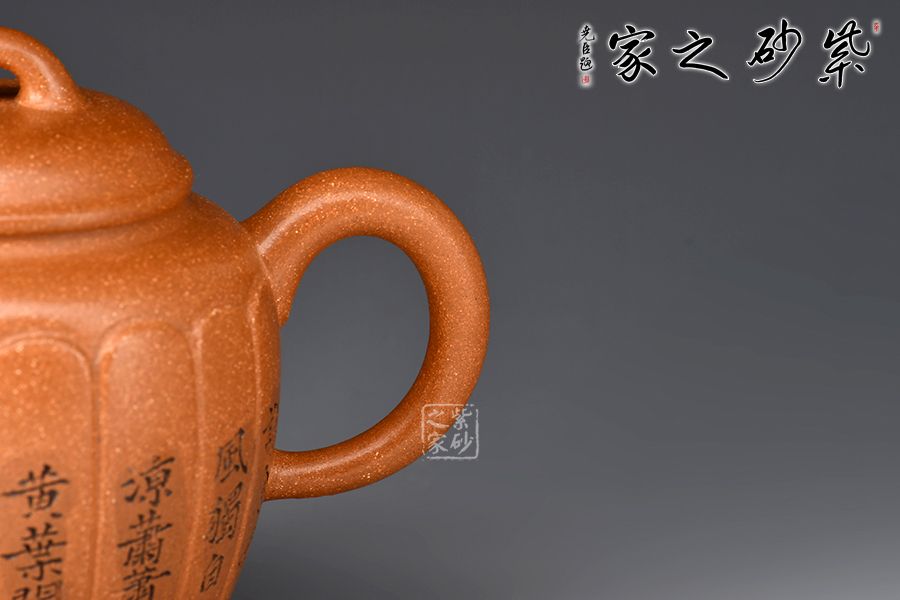 壺身高挺,線條流暢,筋紋裝飾,從上而下似盛開的花朵。截蓋設(shè)計(jì),嚴(yán)絲合縫,拱形橋鈕方便拿捏。直嘴出水爽利,耳把粗細(xì)有致。。壺身范偉群大師刻繪詩詞,刀刀精雕細(xì)琢,雙正高合制,升值加倍!