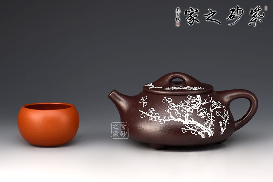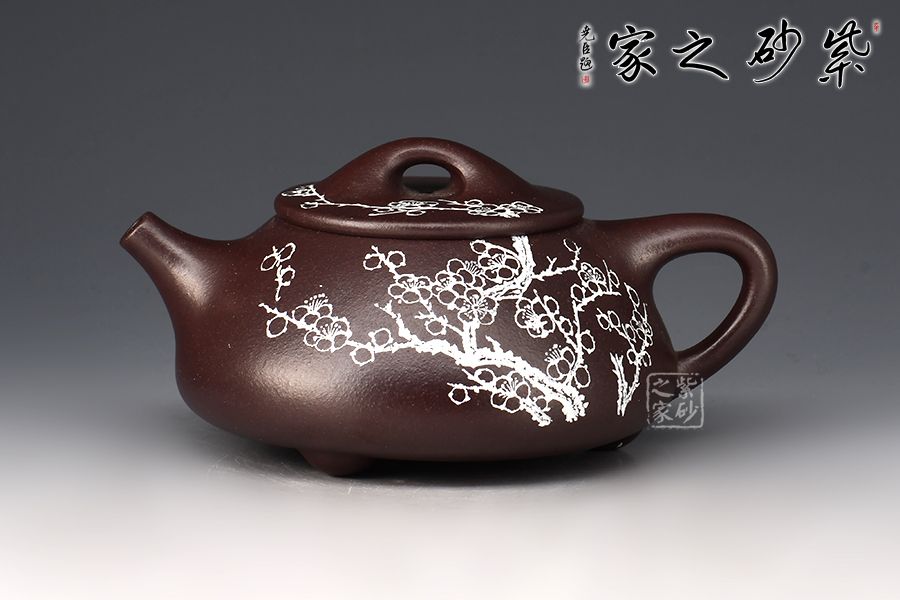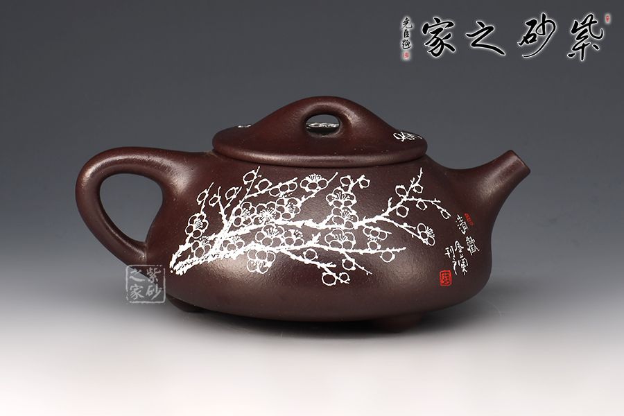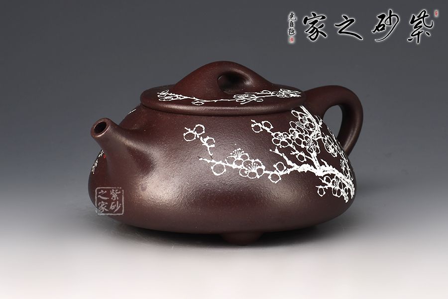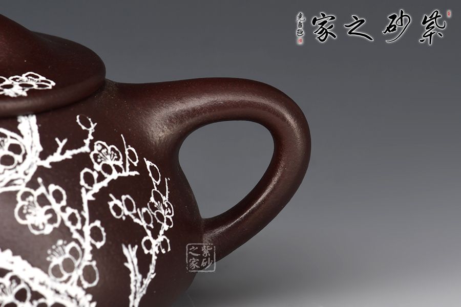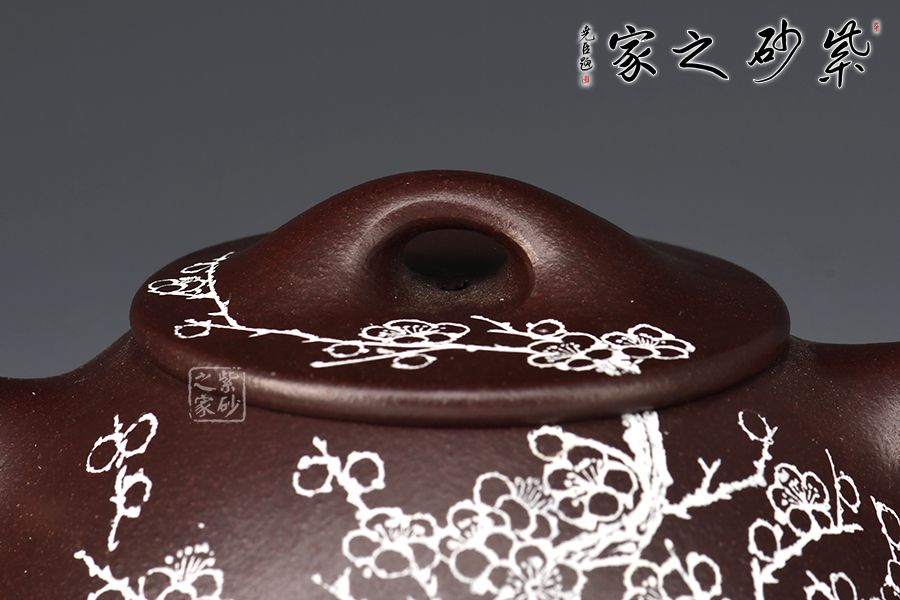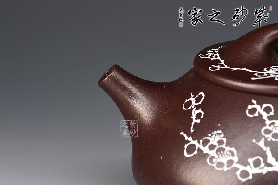 陶金蘭陶刻梅花,自右至左橫貫壺體并延伸至壺蓋,梅花疏密有度,疏影橫斜,可賞可用,薦藏!