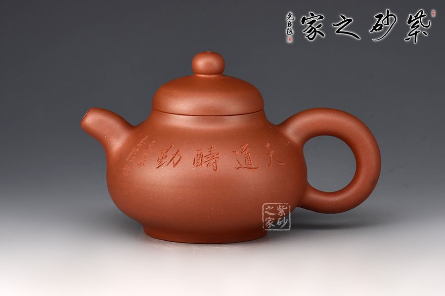 壺身由王志明(天樂)刻繪裝飾,正面刻“天道酬勤”,反面繪以重巒疊嶂,江山秀麗如斯,觀之令人心曠神怡。父子合制,升值加倍!