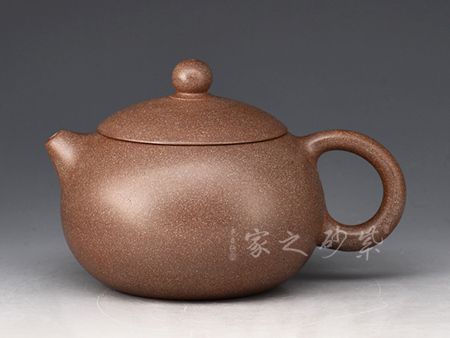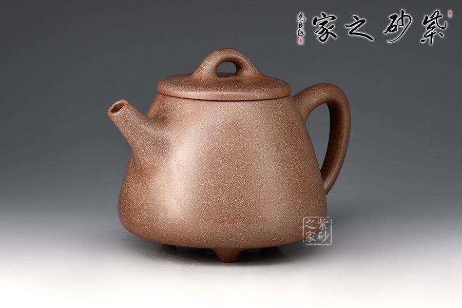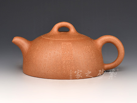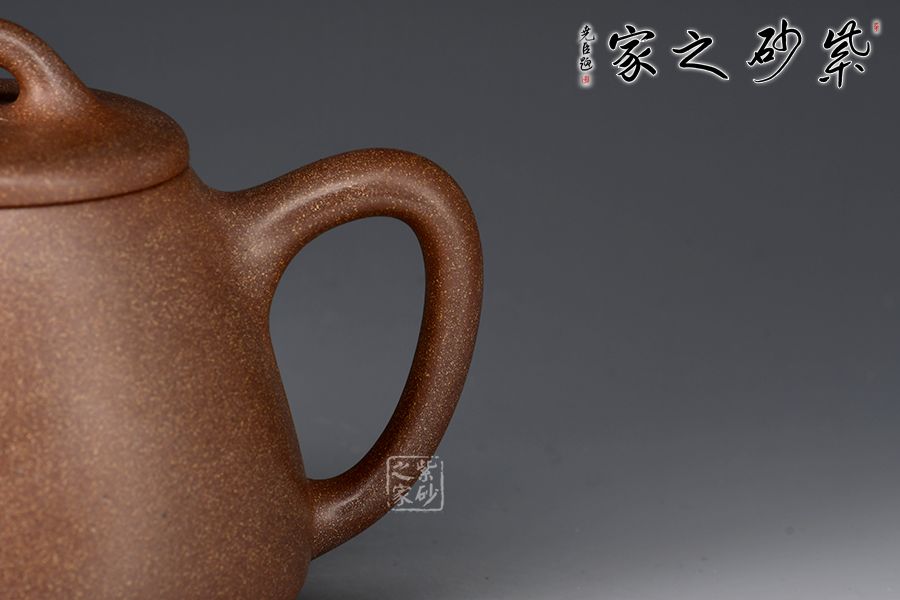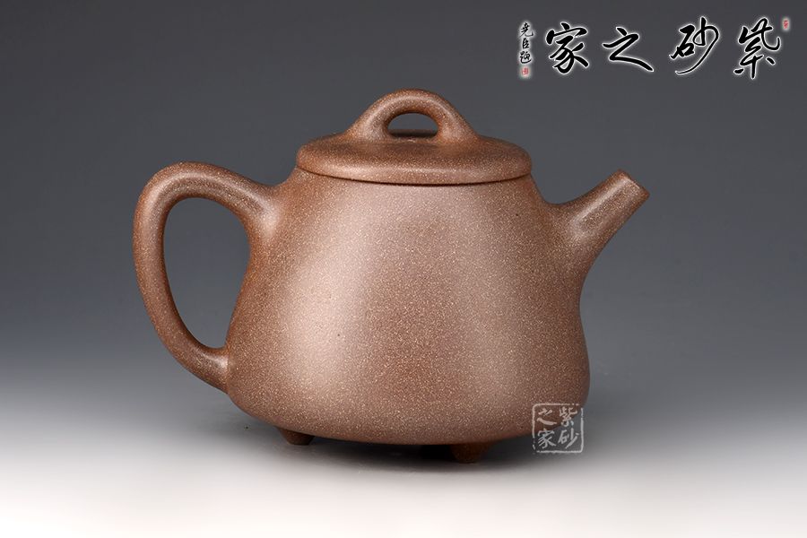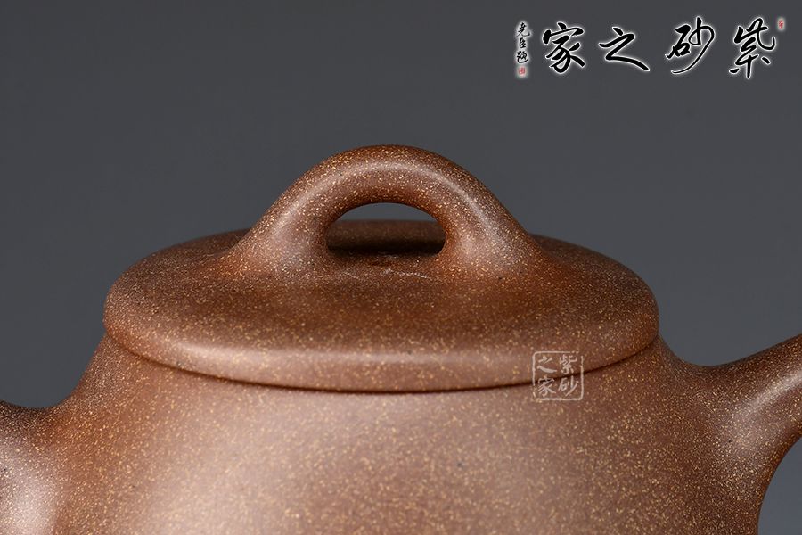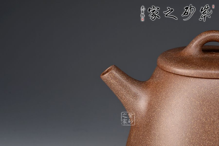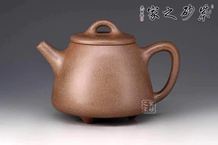 此壺選用桃花泥精制而成,泥色清潤雅致,造型簡潔大方。壺型取十分實(shí)用的石瓢之形,身筒挑高,梯形壺身,氣韻豐滿。平蓋、橋鈕、直流、大耳把挺括大氣,底部三乳足平添輕盈。整器線條流暢,簡約中富含雅韻,390cc大品容量,非常實(shí)用的殺茶利器。