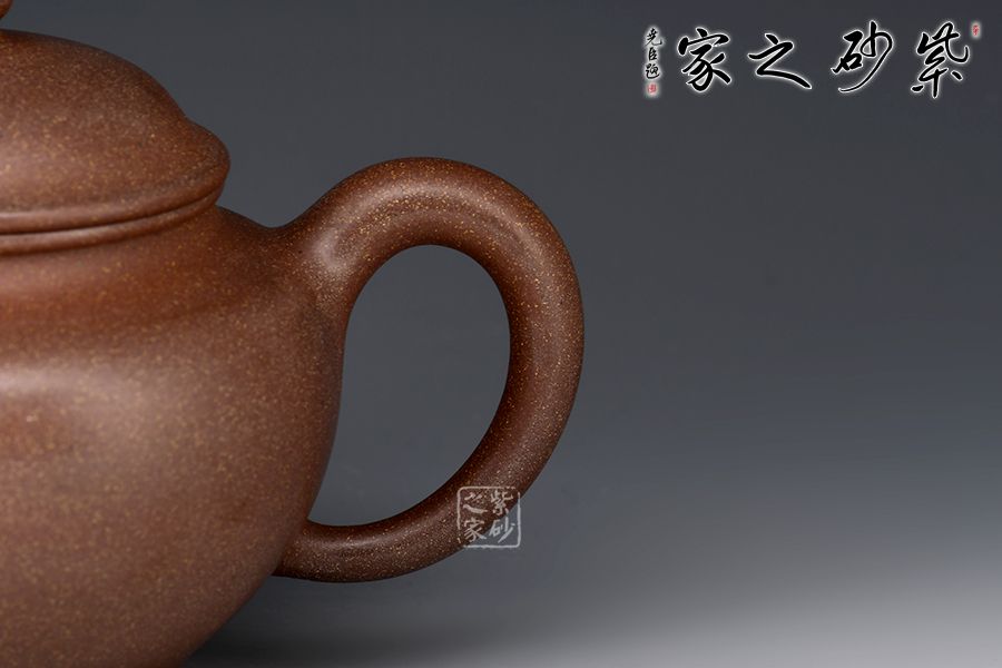 此壺珠圓玉潤、骨肉停勻、比例協(xié)調(diào)、敦旁周正、轉(zhuǎn)折圓潤、雋永耐看??凇⑸w、鈕、流、把、肩、腰的配置比例要協(xié)調(diào)和諧,勻稱流暢,達到無懈可擊,致使器型上的標(biāo)準(zhǔn)要求為“柔中寓剛,圓中有變,厚而不重,穩(wěn)而不笨,有股有肉”。