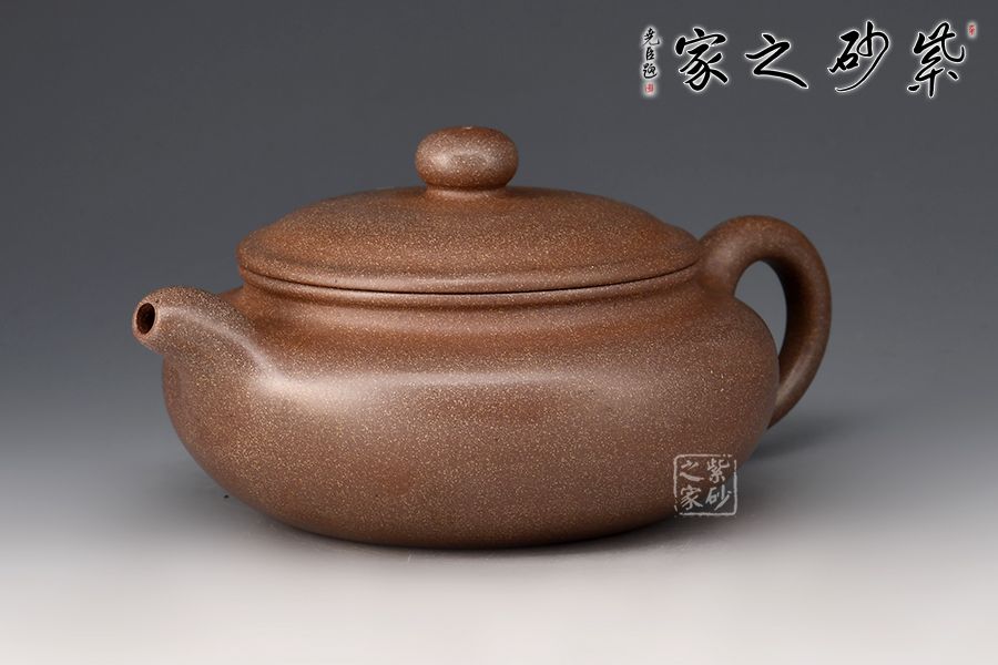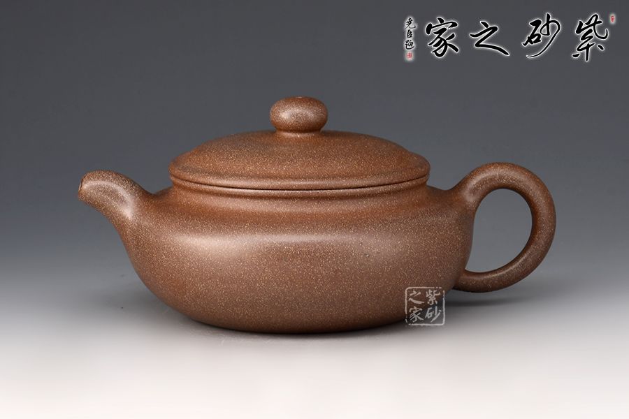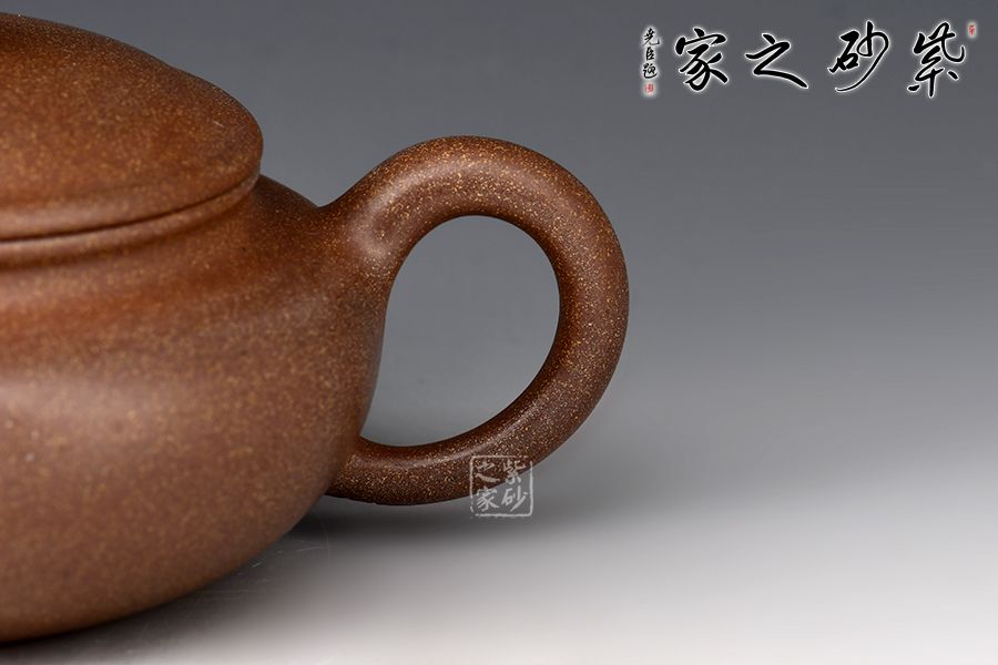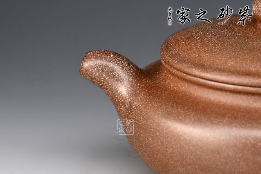 造型仿“鼓”之形,壺身扁而蘊力,壓蓋寬大敦實,使投茶更為便利。彎流短翹胥出,出水極為爽利,與纖巧之耳把呈和諧之勢,比例恰到好處,形體古雅優(yōu)美,氣韻飽滿。整器工藝精良,泡養(yǎng)效果佳,280cc黃金容量,是一把好料精工、非常實用的殺茶利器。