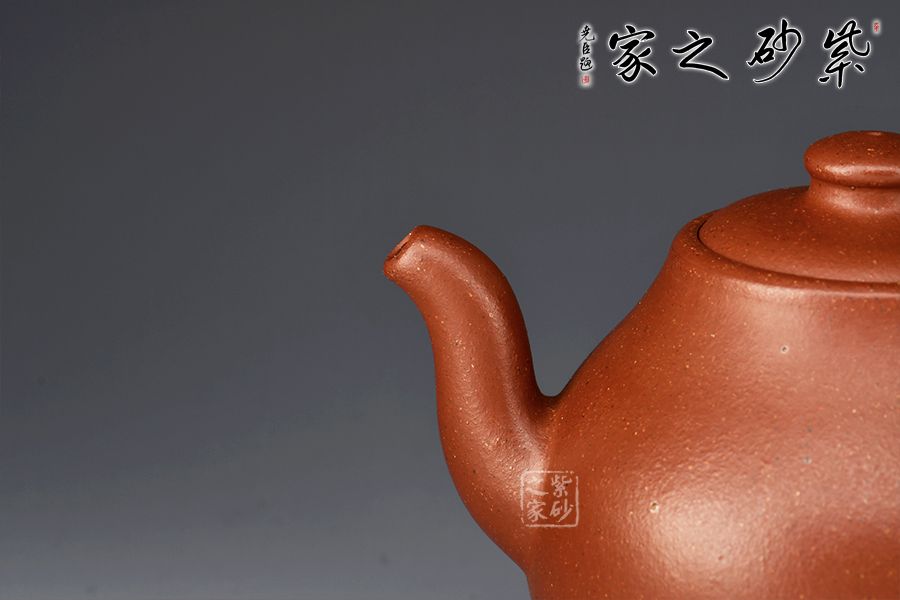 松云壺精選老紅泥,泥色古樸,儒雅中和,簡單大氣。身筒飽滿圓潤,高頸溜肩,蓋面微隆,圓柱鈕小巧可愛。流把胥出自然,舒展大度,腹底加圓盤高足,挺秀俊逸。