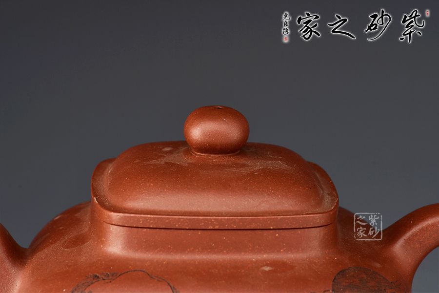 此件傳爐壺,如青銅器般威與穩(wěn)重的壺型,給人以強(qiáng)有力的視覺(jué)沖擊力。原礦底槽青深沉古樸的泥色,與古樸厚重的器型結(jié)合,整壺曲線強(qiáng)勁有力,渾厚端正,方角有圓,轉(zhuǎn)折而韻,是方中寓圓,圓中帶方的典范。