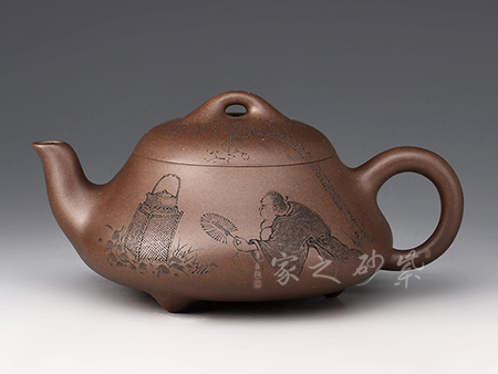 此壺為其選用本山綠泥,全手工精制而成,泥色溫潤(rùn)雅致,透氣性佳,日久使用,漸露鋒芒