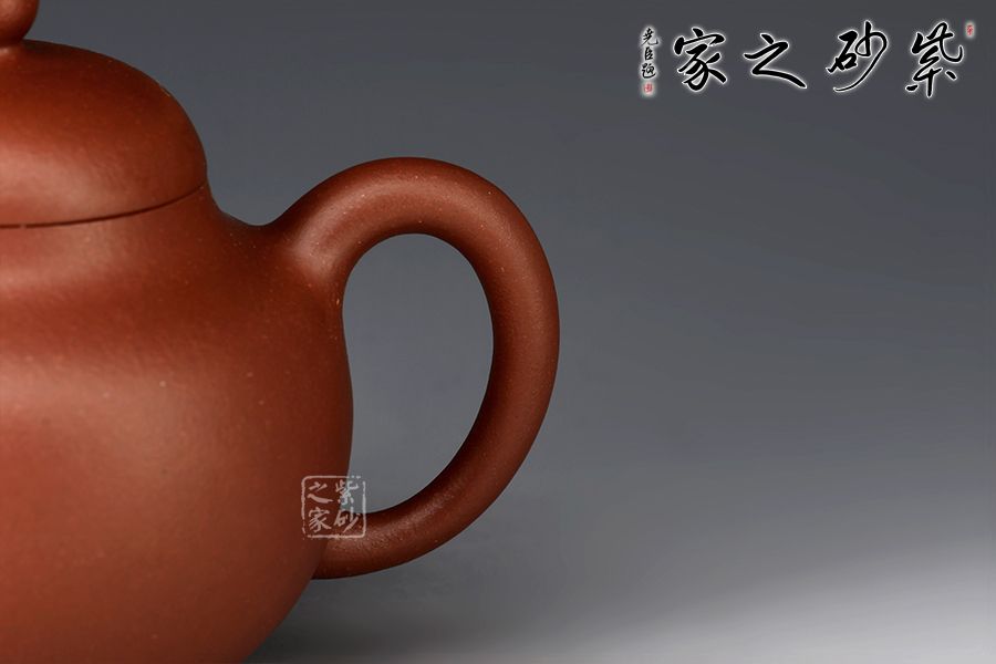此柿圓壺由作者原礦底槽青,全手工制作而成,泥色溫潤,瑩潔雅致。壺身圓潤飽滿,上下收斂。圓鈕、彎流、耳把比例恰到好處,與整體形成和諧之美。作者全手素器功力深厚,整器線條周轉(zhuǎn)柔順,氣韻通貫,于簡約之中,透出一種自然質(zhì)樸之味,表以事事如意、萬事亨通的美好寓意,成色佳、易泡養(yǎng)、上手舒適,是一把賞用皆宜的殺茶利器。