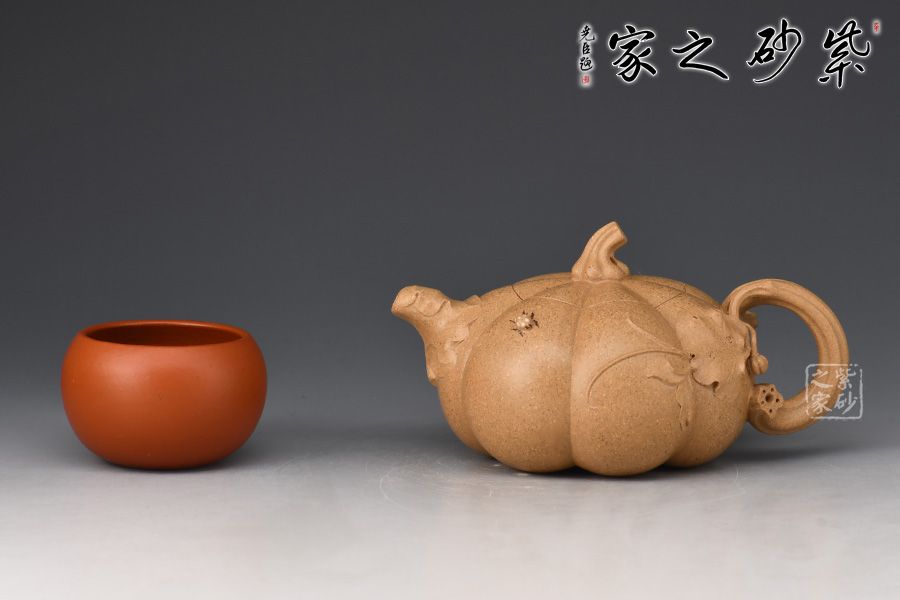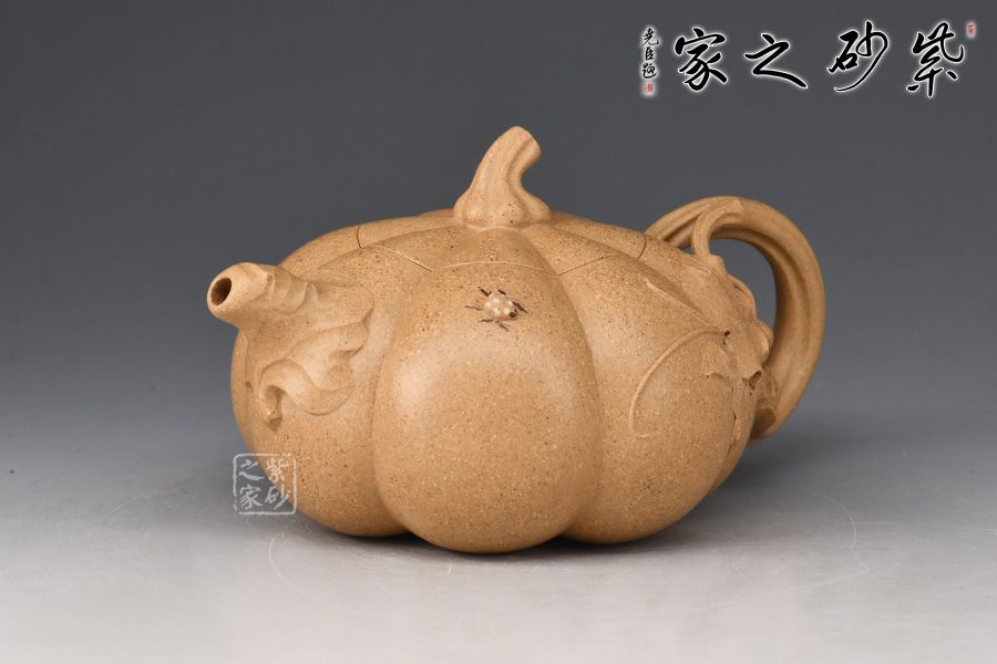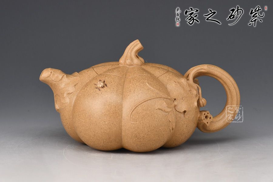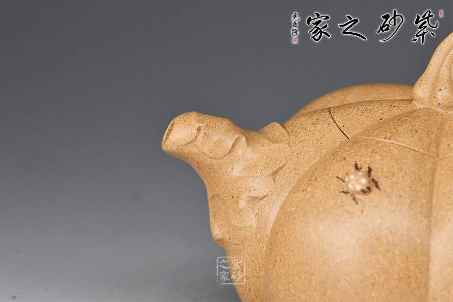 南瓜壺精選段泥為胎,老師全手工制作而成。此壺遵循傳統(tǒng)南瓜壺造型,壺身飽滿,造型精巧別致,值得賞玩。