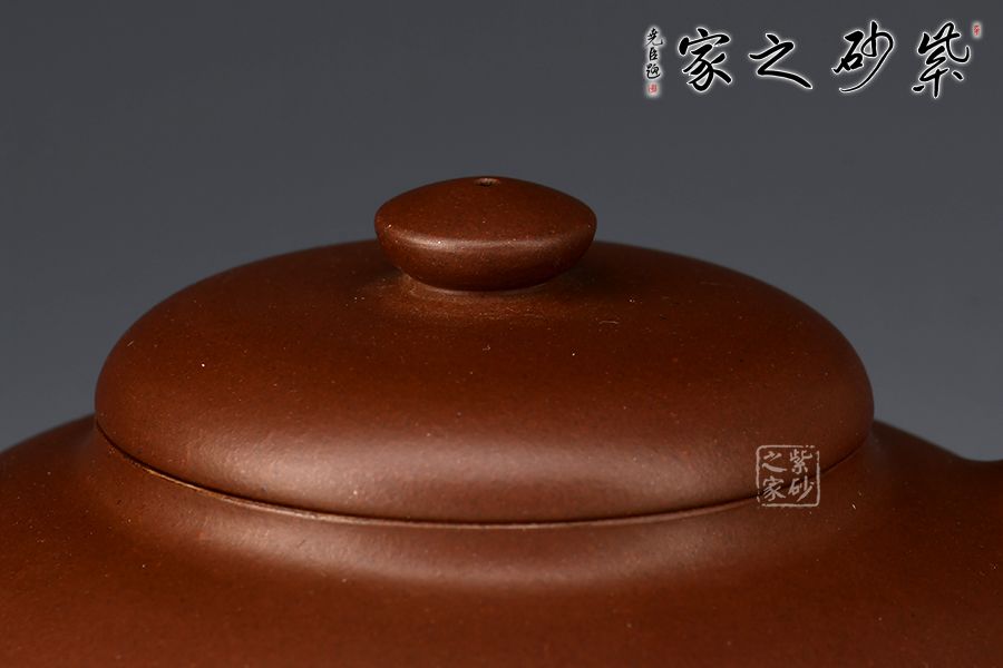 此壺精選原礦紫泥作胎,成色古雅。造型取自曼生經(jīng)典款型,壺身呈扁圓形,若兩器皿對(duì)合而成,腰線流暢順滑,過(guò)渡自然。坡蓋圓潤(rùn)精巧,壺鈕似壺身之形,兩者巧妙呼應(yīng)。挺拔上揚(yáng)的彎流嘴,出水爽利,秀麗的圈把,與壺嘴對(duì)稱向外延展,氣韻盎然。底部圈足托起壺身,平添輕盈,更顯雅致。整壺做工精細(xì),以曲線柔和構(gòu)筑,秀雅內(nèi)斂,觀賞性與實(shí)用性俱佳。