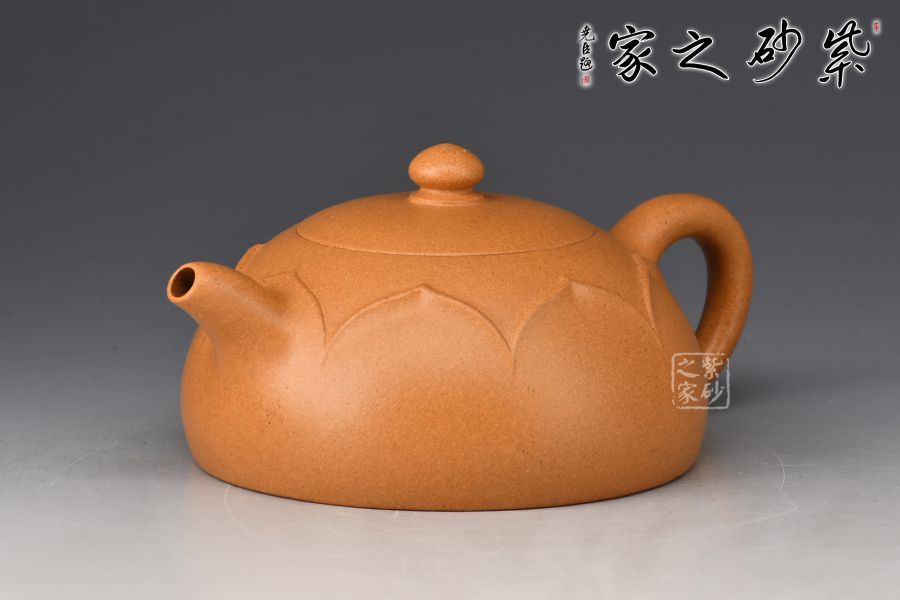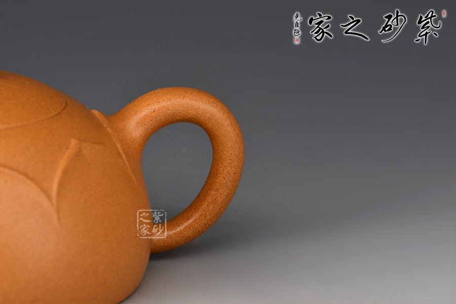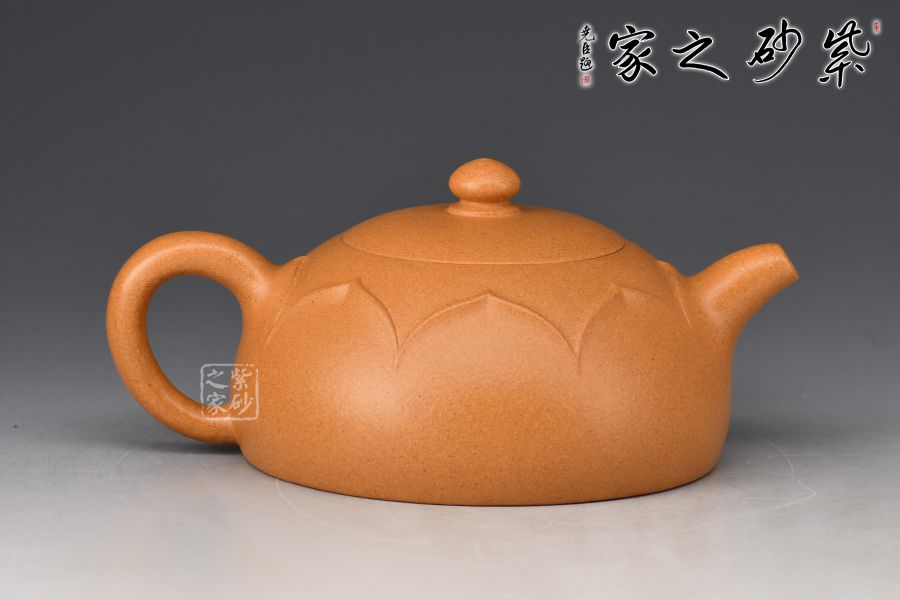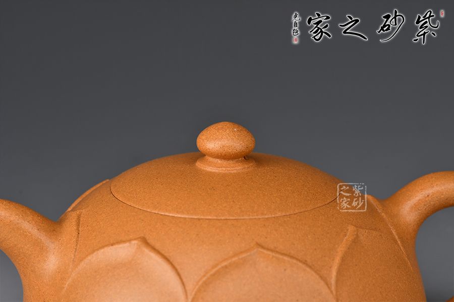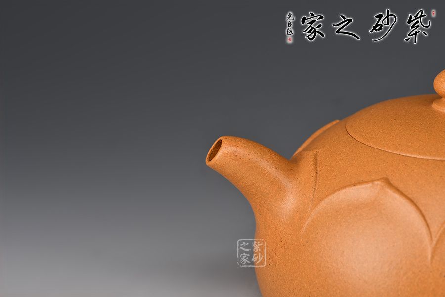 此壺為作者選用原礦金砂段泥精制而成,色澤清麗溫雅,顆粒感盡顯古樸韻味。整壺由范澤鋒大師監(jiān)制,湯先武老師制作,以蓮入壺,壺身呈半月形,截蓋與之渾然一體,上立壺鈕,宛若玉蕊。壺面瓣紋裝飾,將壺身裹而圍之,塑以蓮花花苞,呈待放之勢(shì)。整壺形簡(jiǎn)而意不簡(jiǎn),素雅的造型,簡(jiǎn)練的線(xiàn)條,勾勒出蓮花一塵不染的高潔氣韻,與“出淤泥而不染,濯清漣而不妖”完美呼應(yīng),是一把非常實(shí)用的殺茶利器。