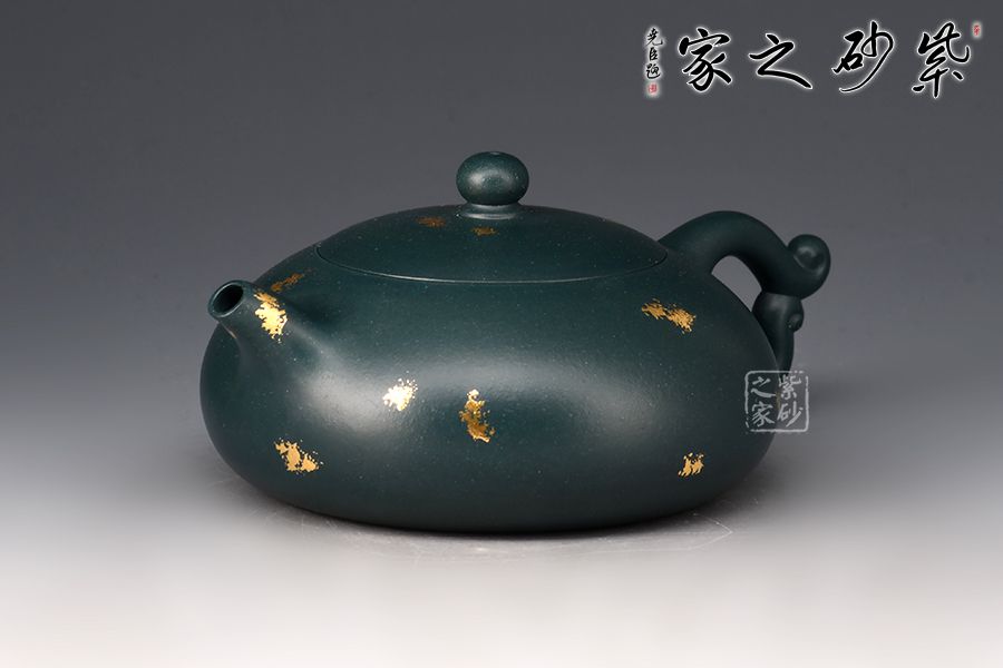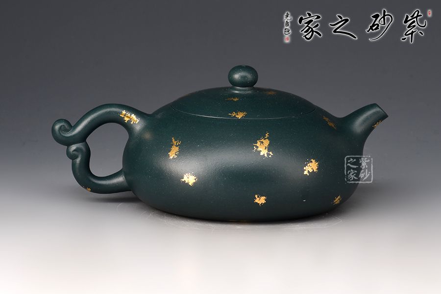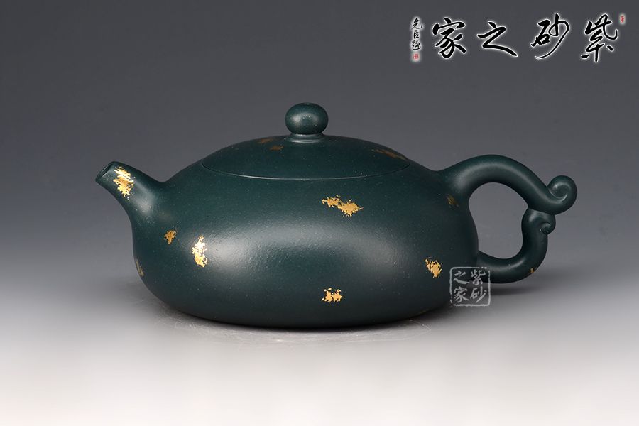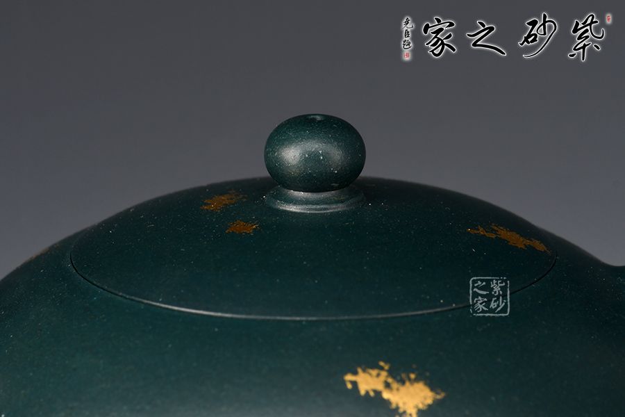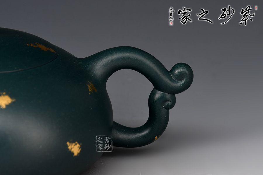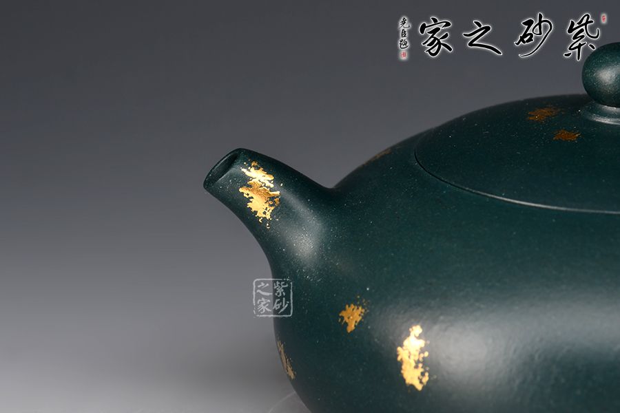 暮雪流霞?jí)鼐x蘇門(mén)答蠟青為胎,老師全手工制作。湯宣武制作,范澤鋒監(jiān)制。壺身飽滿豐腴,線條流暢,截蓋吻合嚴(yán)密,通轉(zhuǎn)不滯。壺把造型新穎,似天邊云霞,帶來(lái)飄飄欲仙的雅致韻味,一彎嘴線條流暢,出水暴爽。戧金工藝裝飾,富貴華麗。