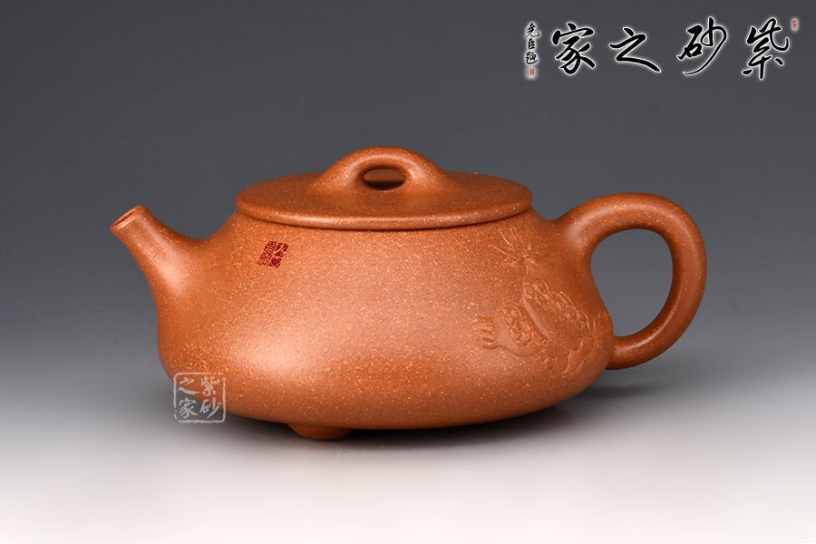 特點(diǎn):原礦因含緞泥、紅泥、紫泥等諸多共生礦,陶之后,于深沉之“橙紅色”底上,滿佈五彩斑斕的粗細(xì)、深淺之紅、黃星斑點(diǎn)。