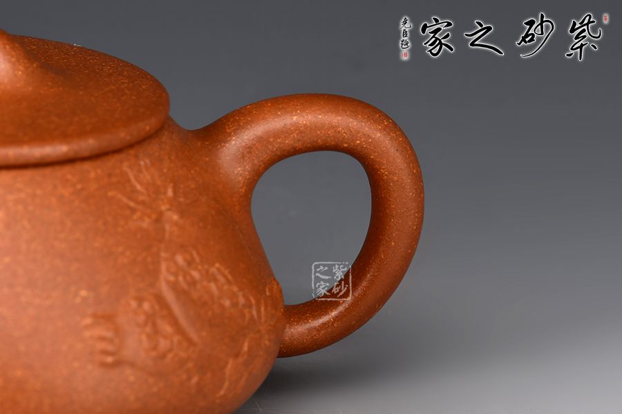 泥性:原礦因含緞泥、紅泥、紫泥等諸多共生礦,陶之后,于深沉之“橙紅色”底上,滿佈五彩斑斕的粗細(xì)、深淺之紅、黃星斑點(diǎn)。