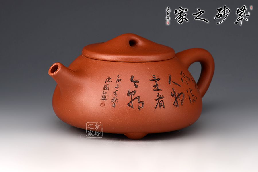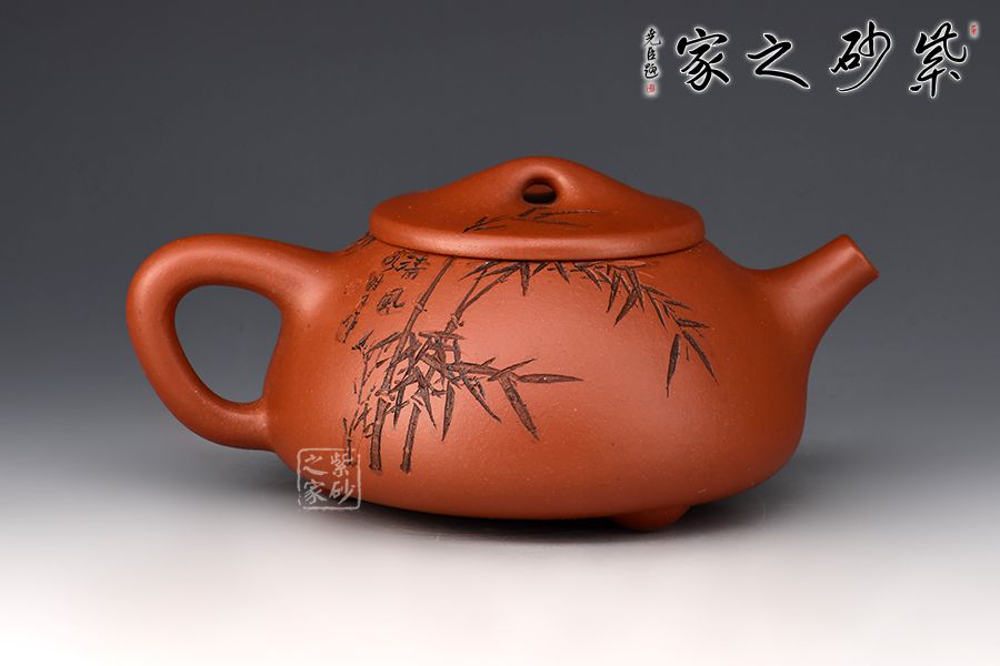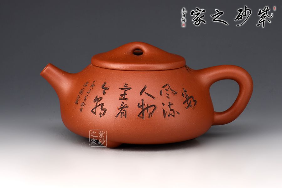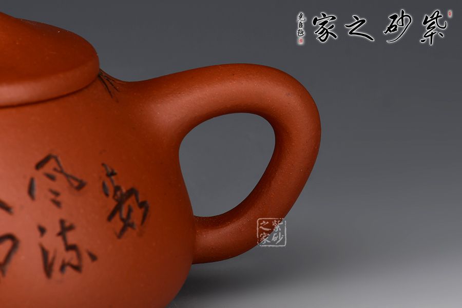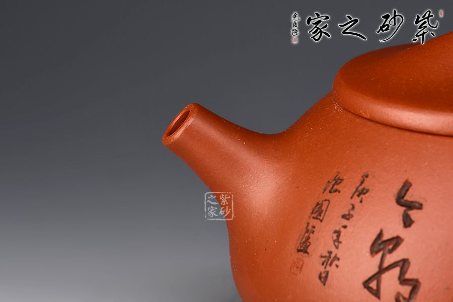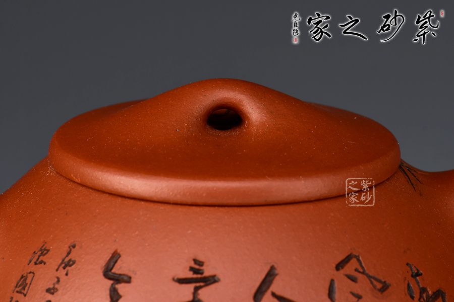 壺身雙面刻繪,刀法精湛,是一把賞用藏皆可的文人紫砂壺。