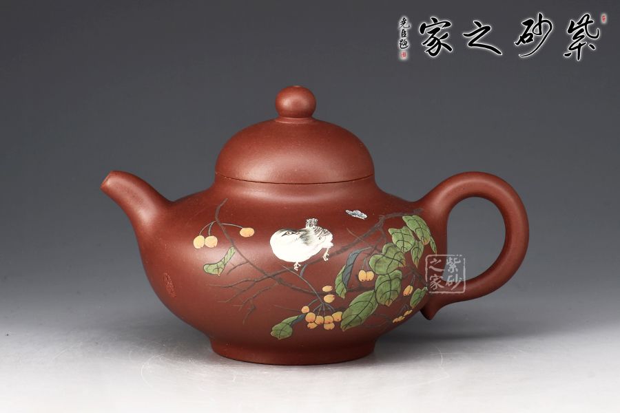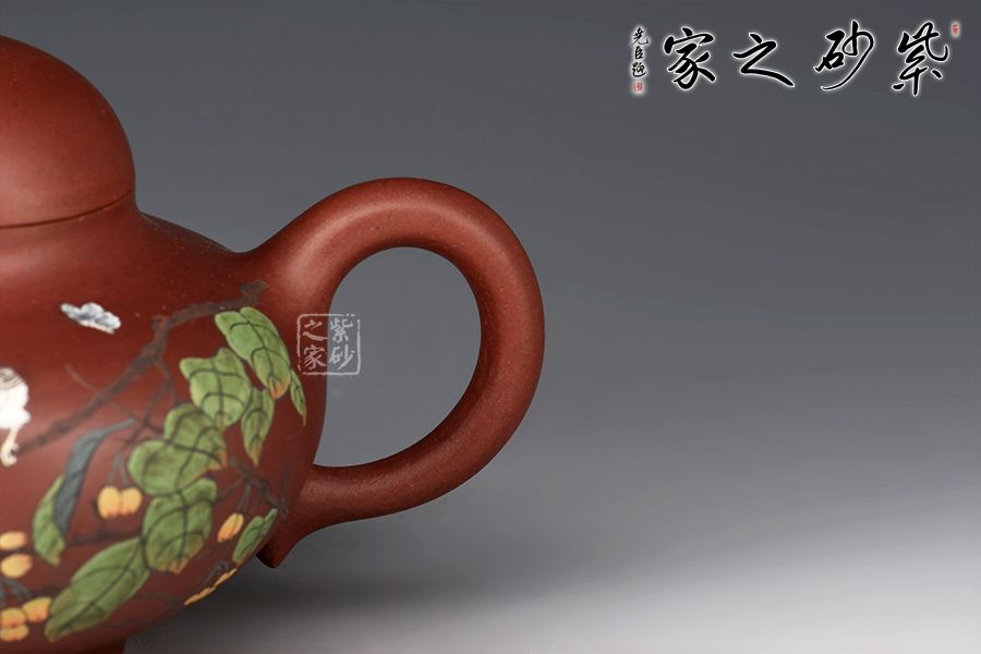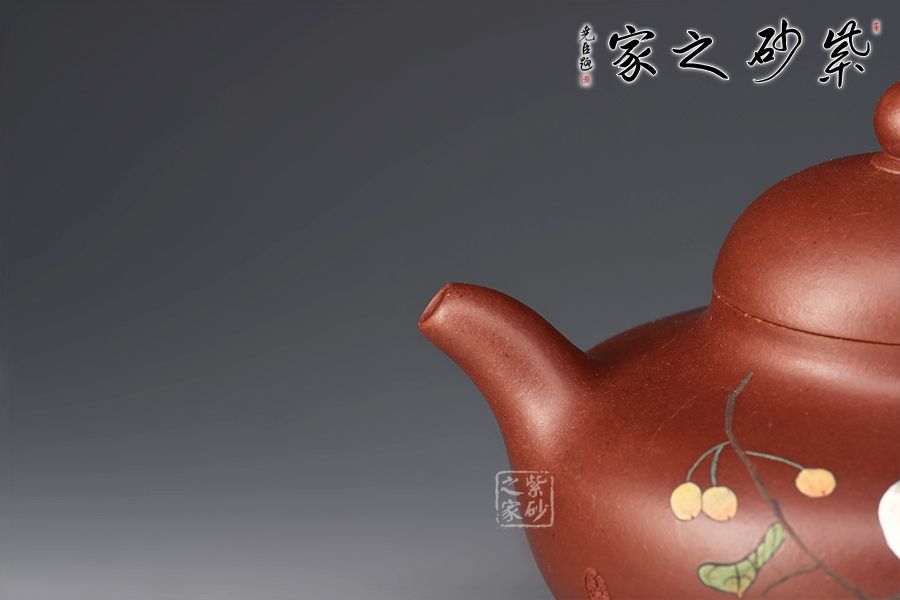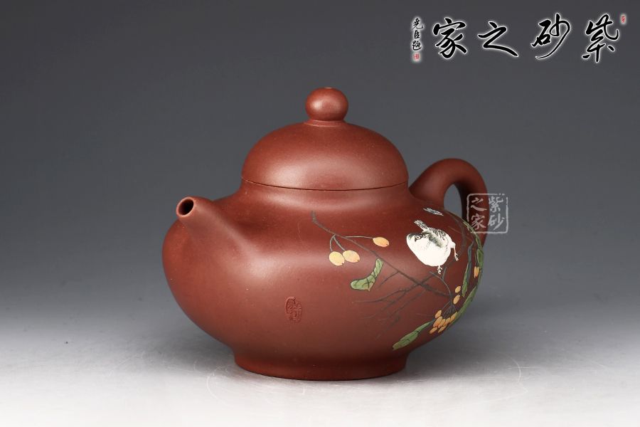 整壺融匯道洪風(fēng)格,用簡(jiǎn)潔明快的線條,塑就敦實(shí)穩(wěn)重之形體,遒勁之中暗藏典雅。壺身日陶刻枇杷與鳥(niǎo),寓意子嗣昌盛家庭和美幸福,是一把欣賞、把玩、使用皆宜的紫砂壺佳作,值得入手。