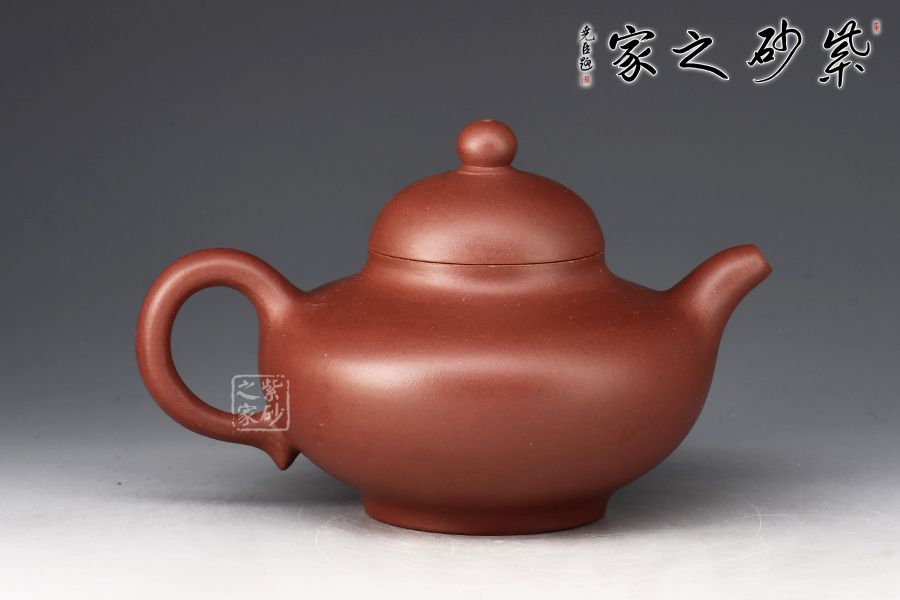 此壺為作者選用龍血砂,全手工精制而成,泥料稀有,色澤古樸溫雅。圓鈕、圓蓋、圓身,三圓相疊,立于圓形挖足之上,端莊勻稱,圓潤(rùn)飽滿。壺蓋高鼓,氣勢(shì)雄渾,彎流渾圓胥出,出水爽利,耳把渾厚大氣,剛勁有力。