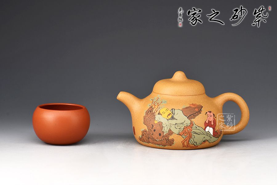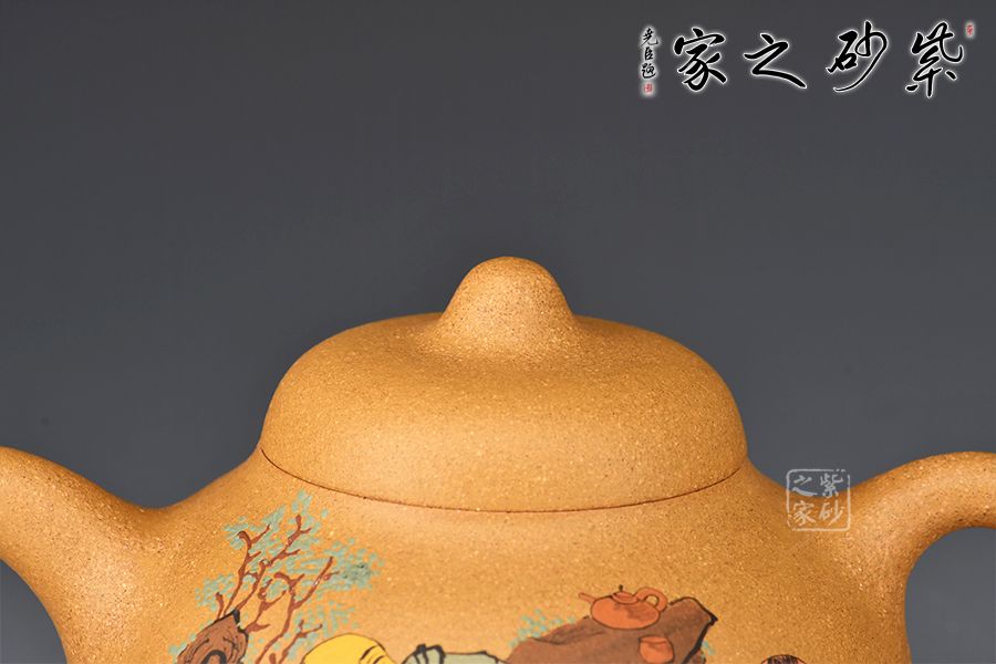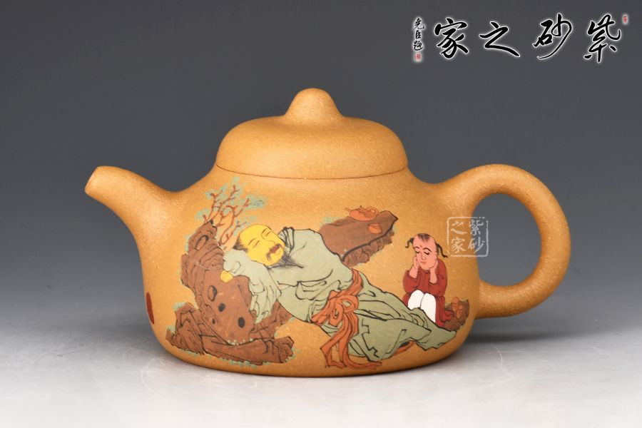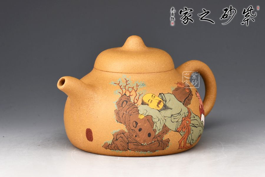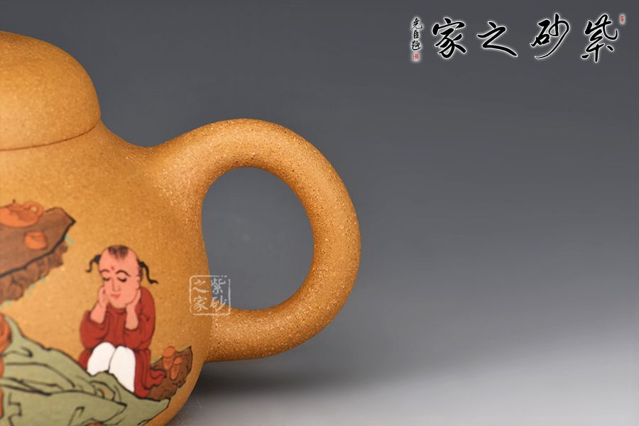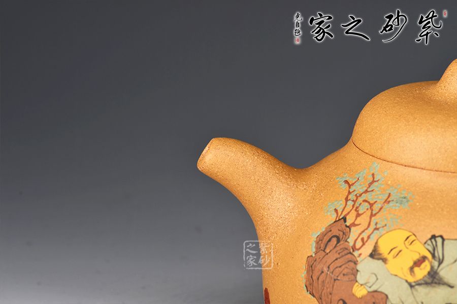 此外,壺身正面泥繪裝飾,一詩人品茶歇息的畫面,反面刻繪“茶禪一味”四個(gè)大字,賞玩自用皆宜。