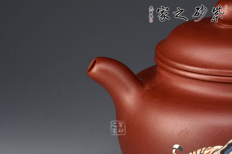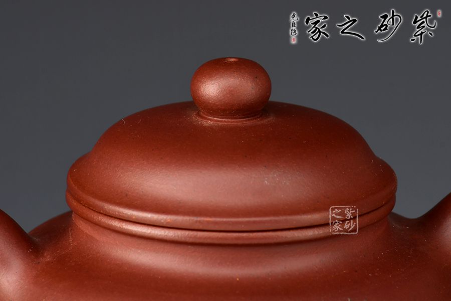 此壺為作者選用龍血砂,全手工精制而成,泥色溫潤,透氣性佳。整器簡潔素雅,壺身圓融飽滿,口蓋寬大,利于投茶。壺蓋隆起,壺鈕呈扁球狀,壺鈕、壺蓋、壺身以扁圓形相呼應(yīng),圓圓相疊,極富韻律。流、把自然胥出,線條柔和而圓潤,細膩而流暢,加之圈足,平添輕盈之感。整器成色佳,易泡養(yǎng),推薦入手。