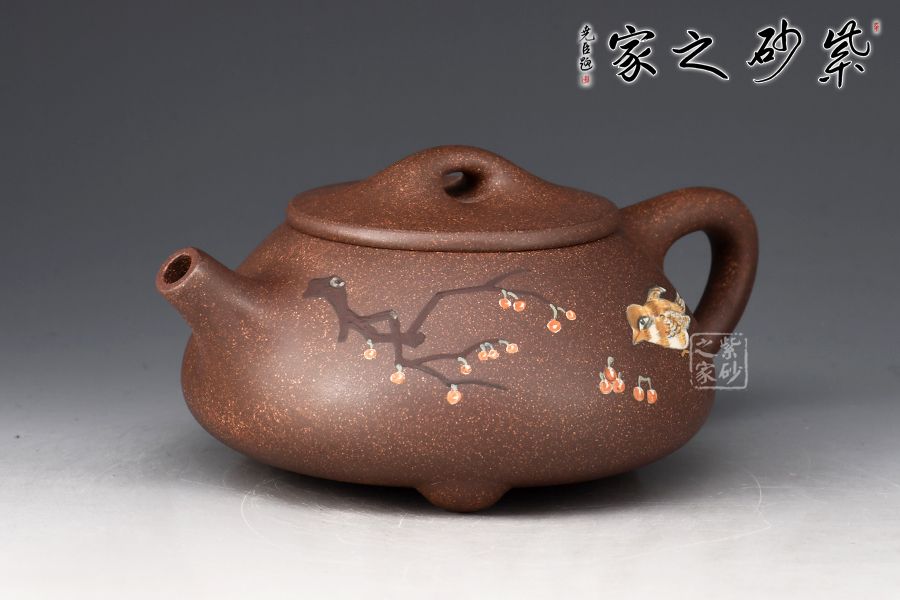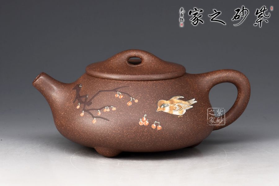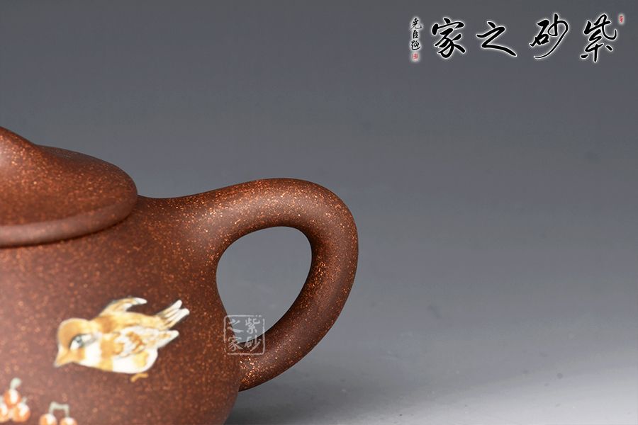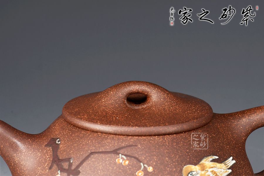 此外,壺身泥繪花鳥(niǎo)圖,工藝精湛,畫(huà)面精美,氣韻生動(dòng),典雅大方,藝術(shù)性與實(shí)用性兼具,是一把高性價(jià)比的紫砂泥繪佳作。