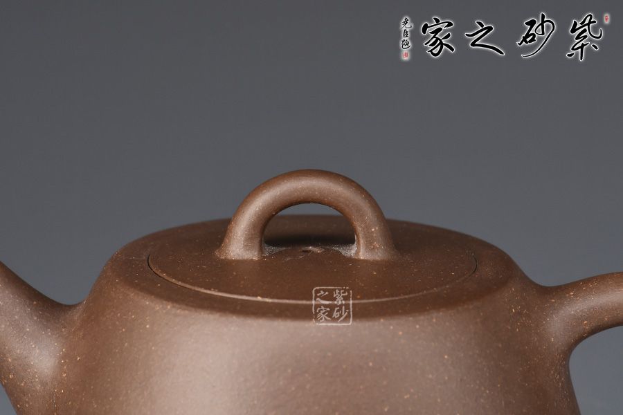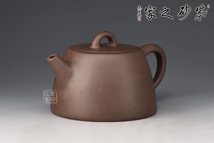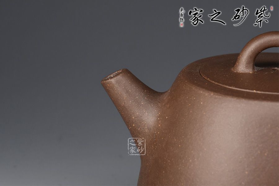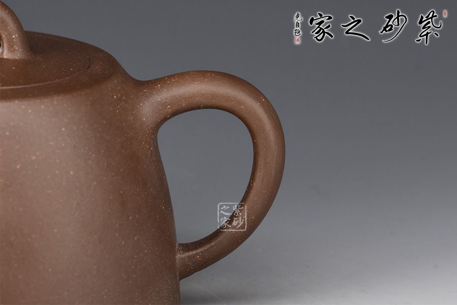 漢鐸壺乃紫砂經(jīng)典器型之一,源于古代樂器。此款漢鐸以天青泥作胎,泥色清雅,手感舒適,以簡單的線條,塑就古樸雅致的形體。身似鐘鈴,平嵌蓋與之渾若一體,圓柱壺鈕上飾以圓環(huán),直流出水爽利,環(huán)形把持握舒適,各部件比例和諧,相得益彰。