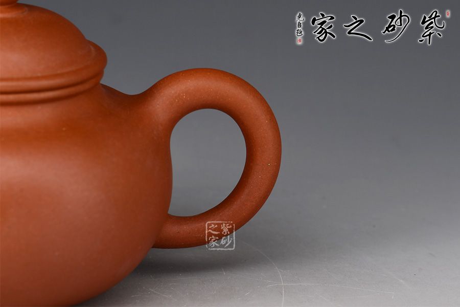此壺為作者選用原礦底槽青,全手工精制而成,泥質(zhì)細(xì)膩,觸之溫潤(rùn),上手十分舒適,泡養(yǎng)效果出色。造型承襲大亨掇球之樣式,珠鈕、圓蓋相壘于球身,飽滿外鼓的壺腹與蓋鈕形成夸張的對(duì)應(yīng),氣韻充沛。口蓋子母線相合,一彎流出水爽利,大耳把自肩部胥出,持握稱手。整器樸素古雅,敦和穩(wěn)健,140cc把玩于手,樂(lè)趣十足。