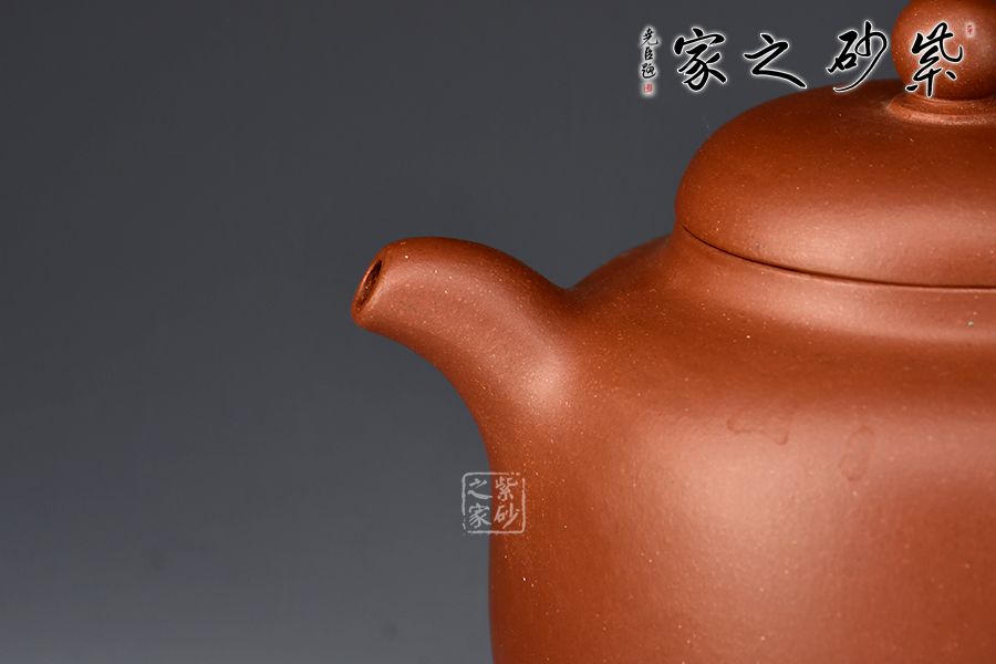作品通體呈圓形,壺蓋圓潤微隆,鈕圓、嘴圓而挺直,把圓而厚實。壺腹飽滿,玉立亭勻、自然清雅卻又沉穩(wěn)浩然力韻十足。整體線條流暢自然,大氣典雅之韻味十足。