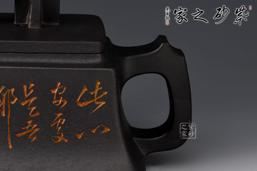 壺身四方,穩(wěn)重大氣,韻味十足。直嘴上挺,方形壺把,一方抵十圓??谏w寬廣,投茶方便,清洗容易,實(shí)用性好,壺鈕設(shè)計(jì)獨(dú)特,形似一個(gè)房子,此心安處是吾鄉(xiāng),萬家燈火總有一盞為您點(diǎn)亮。