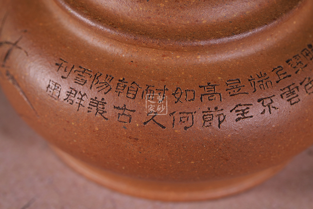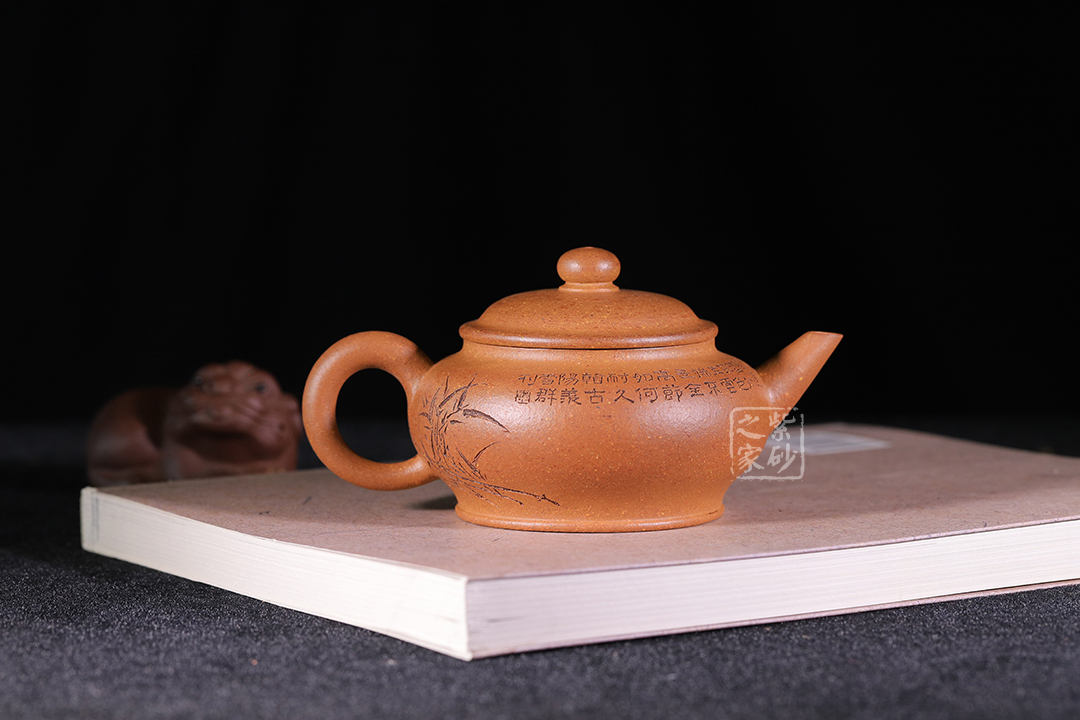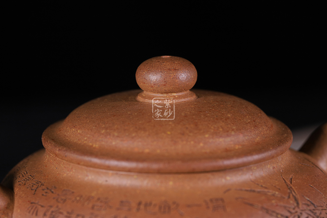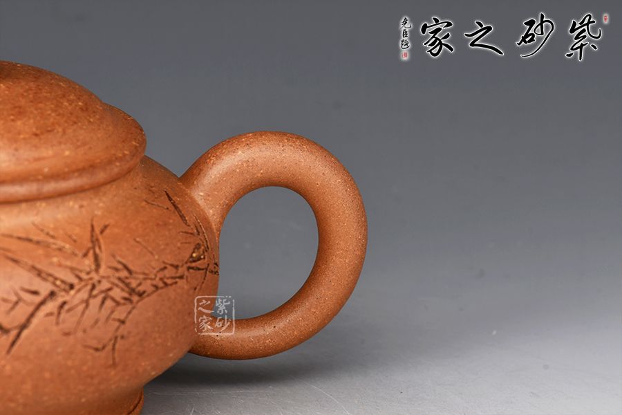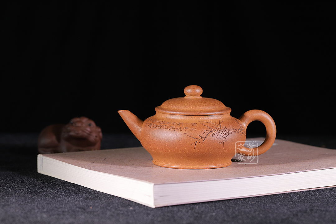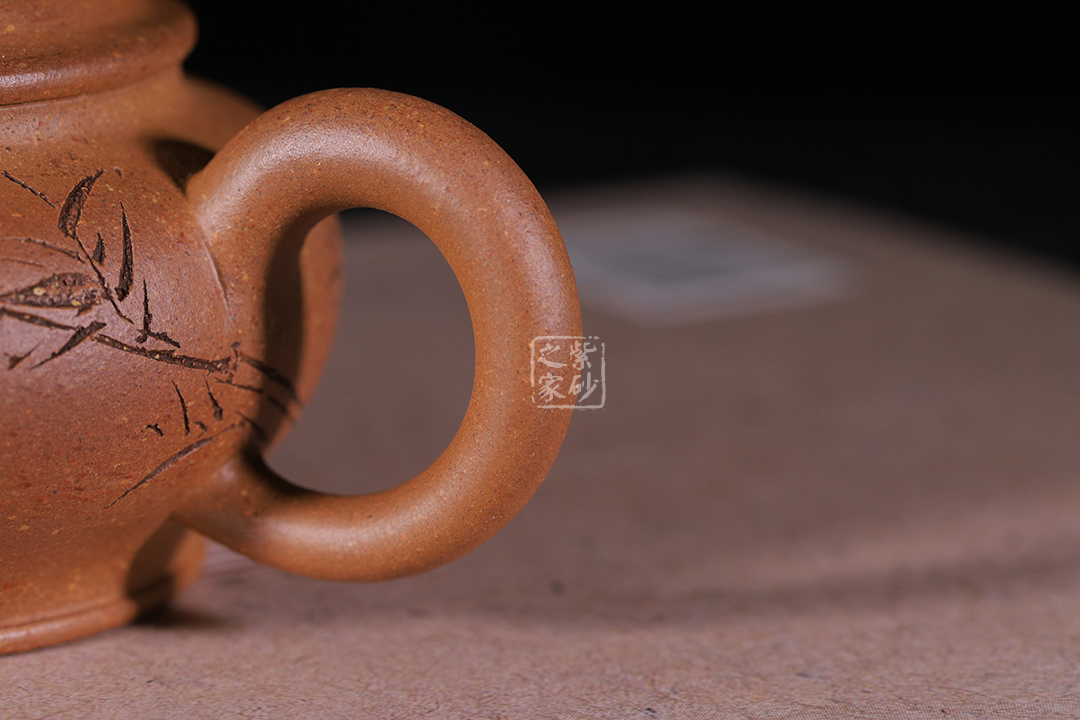 泥性:感甜嫩綿密,質(zhì)堅(jiān)而溫潤,呈近田黃色調(diào),為江蘇宜興趙莊山系朱泥礦~黃石黃之共生礦,經(jīng)挑揀練製而成,因含鐵量只達(dá)6%左右,致陶之后呈“金田黃色”。