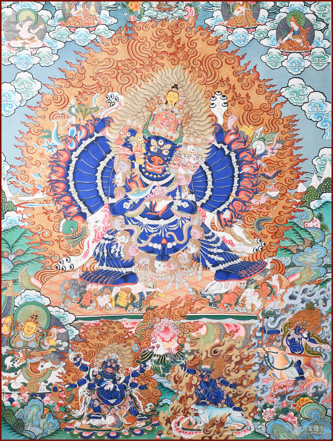 大威德金剛藏密認(rèn)為其是文殊菩薩的忿怒相,屬教令輪身,是事業(yè)的根本。于無上瑜伽部、格魯派(黃教)中,與勝樂金剛、密集金剛同為主要的本尊。